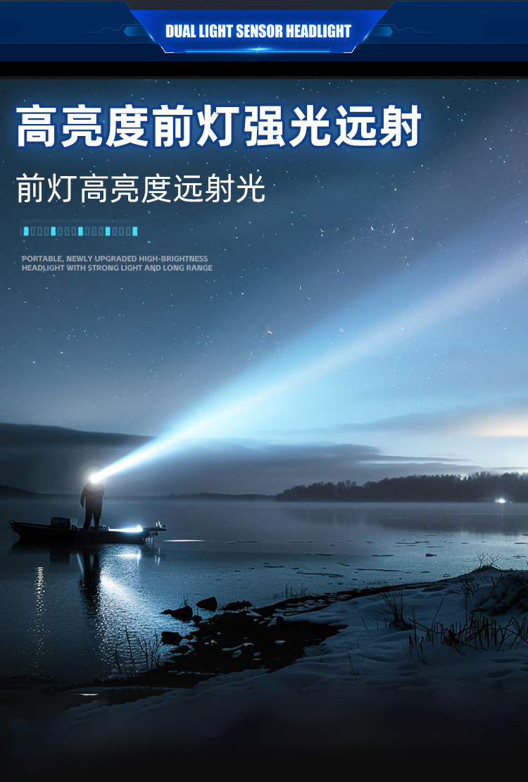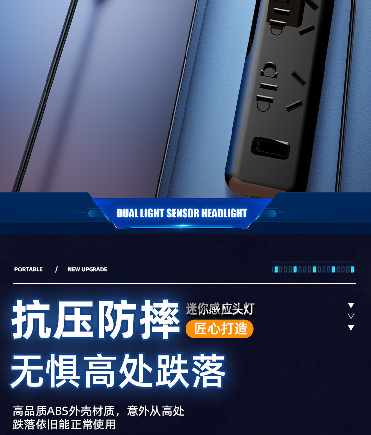 국경 간 강한 빛 이중 광원 LED 헤드라이트 흔들기 감지 다기능 USB 충전식 미니 헤드 장착형 작업 조명