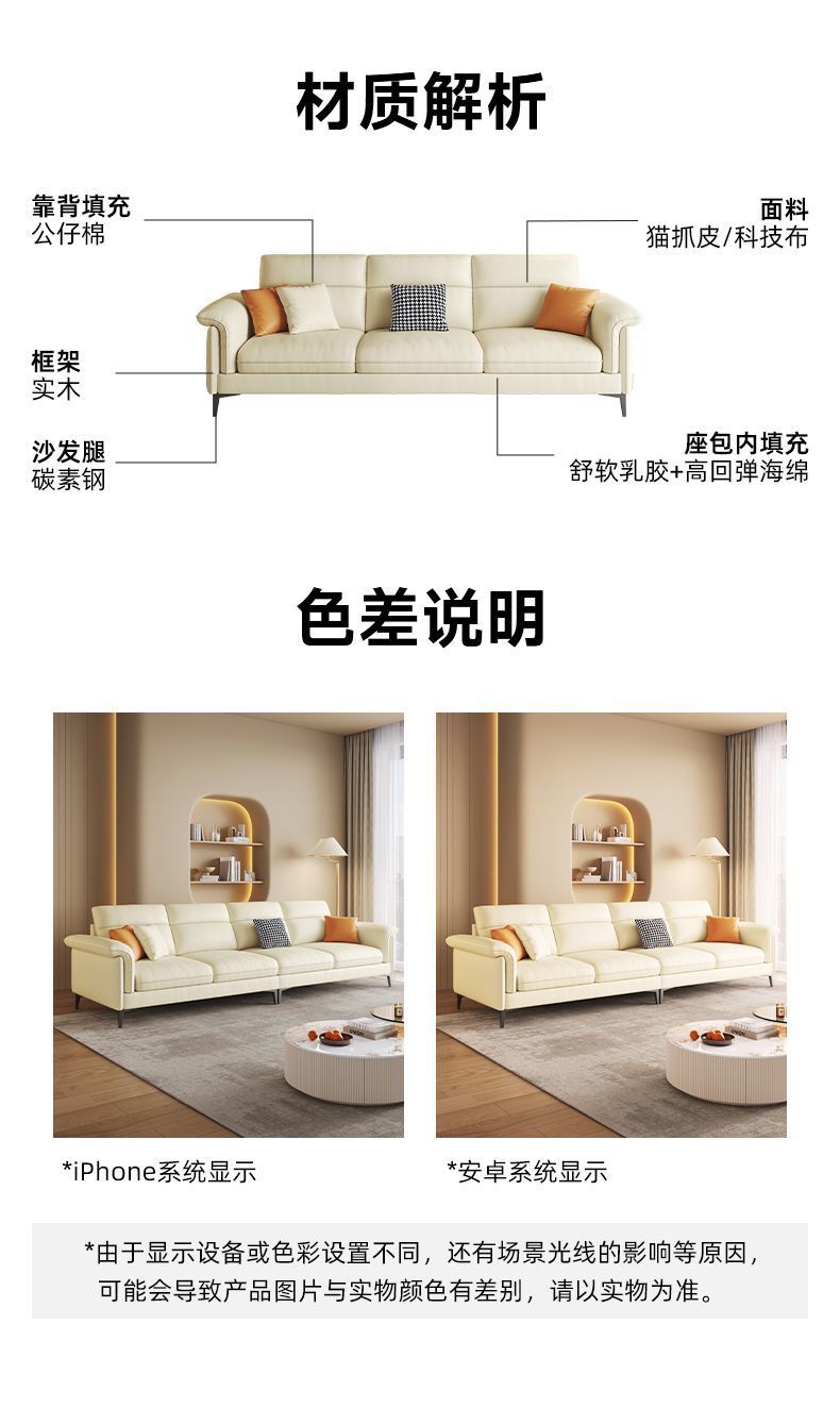 이탈리아 빛 럭셔리 기술 천 거실 작은 아파트 소파 간단한 현대 가정 세탁없는 스트레이트 행 패브릭 소파
