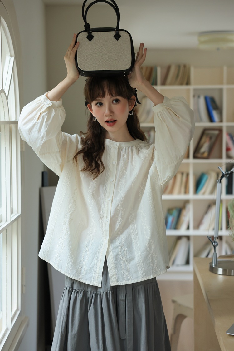 宝贝描述:甜美 时尚 日系 净色 娃娃衫
