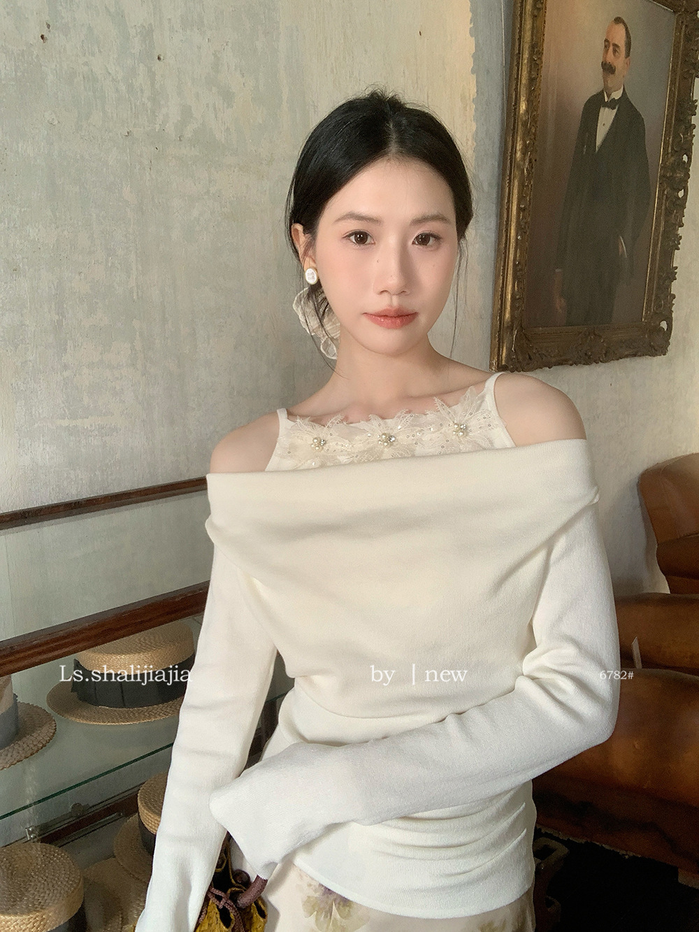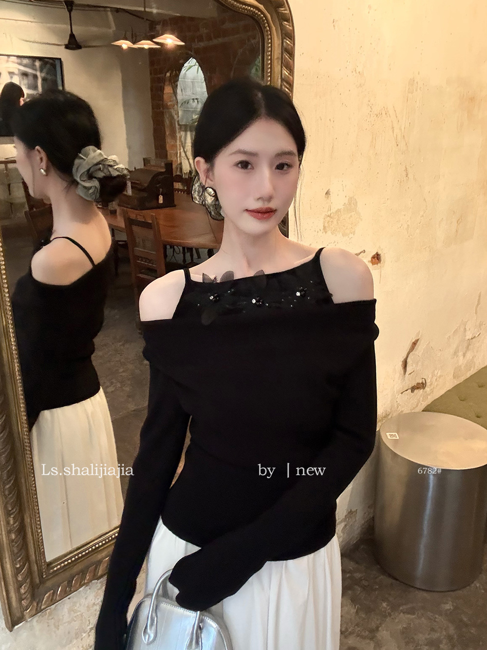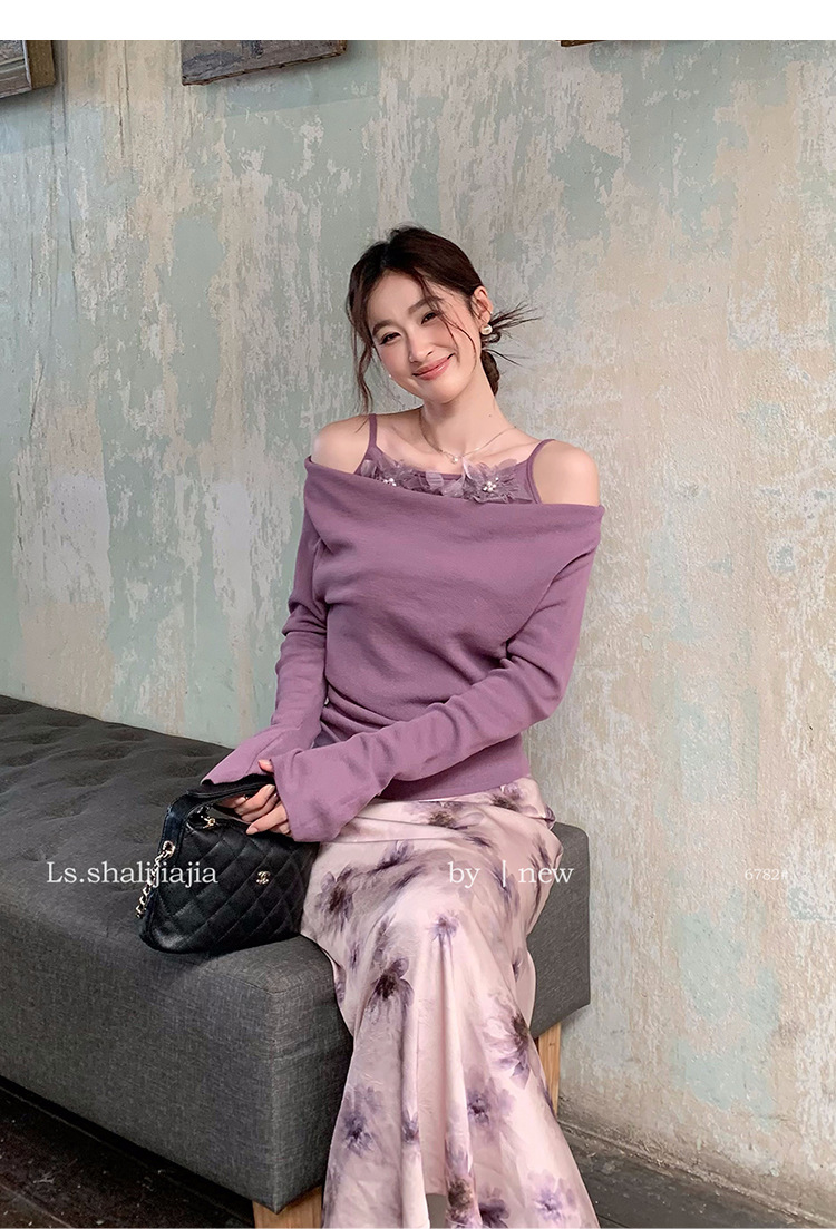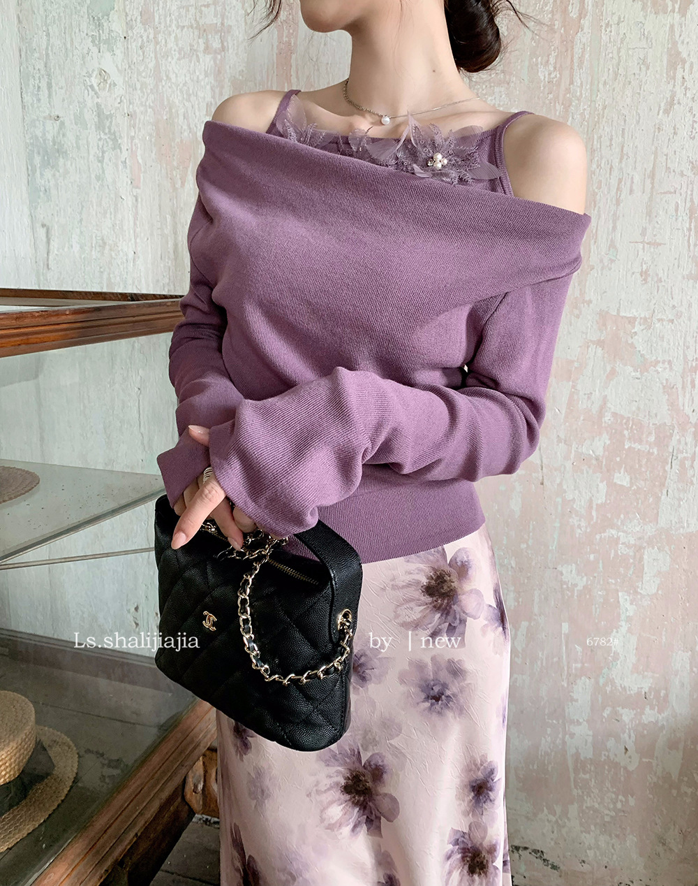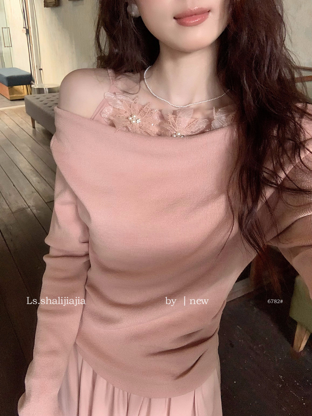 LS 달콤한 여성스러운 기질 우아하고 패셔너블한 슬림핏 페이크 투피스 니트 탑 25년 봄 신상품 6782