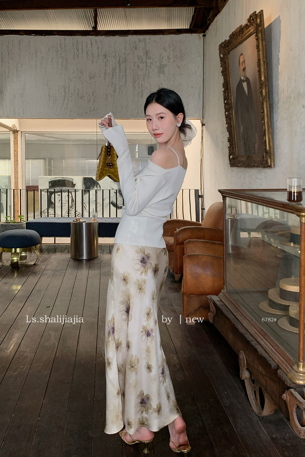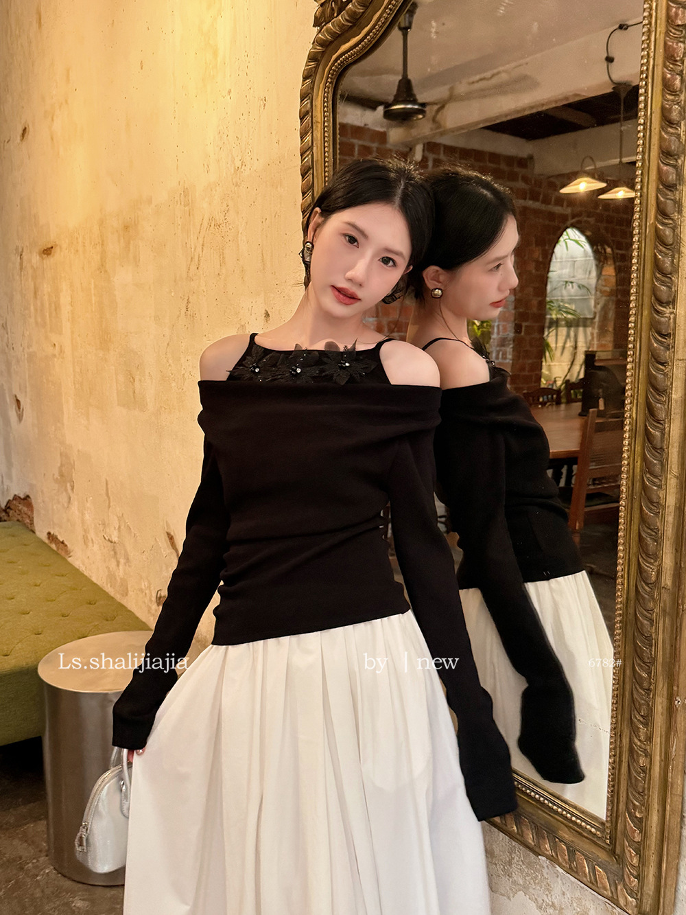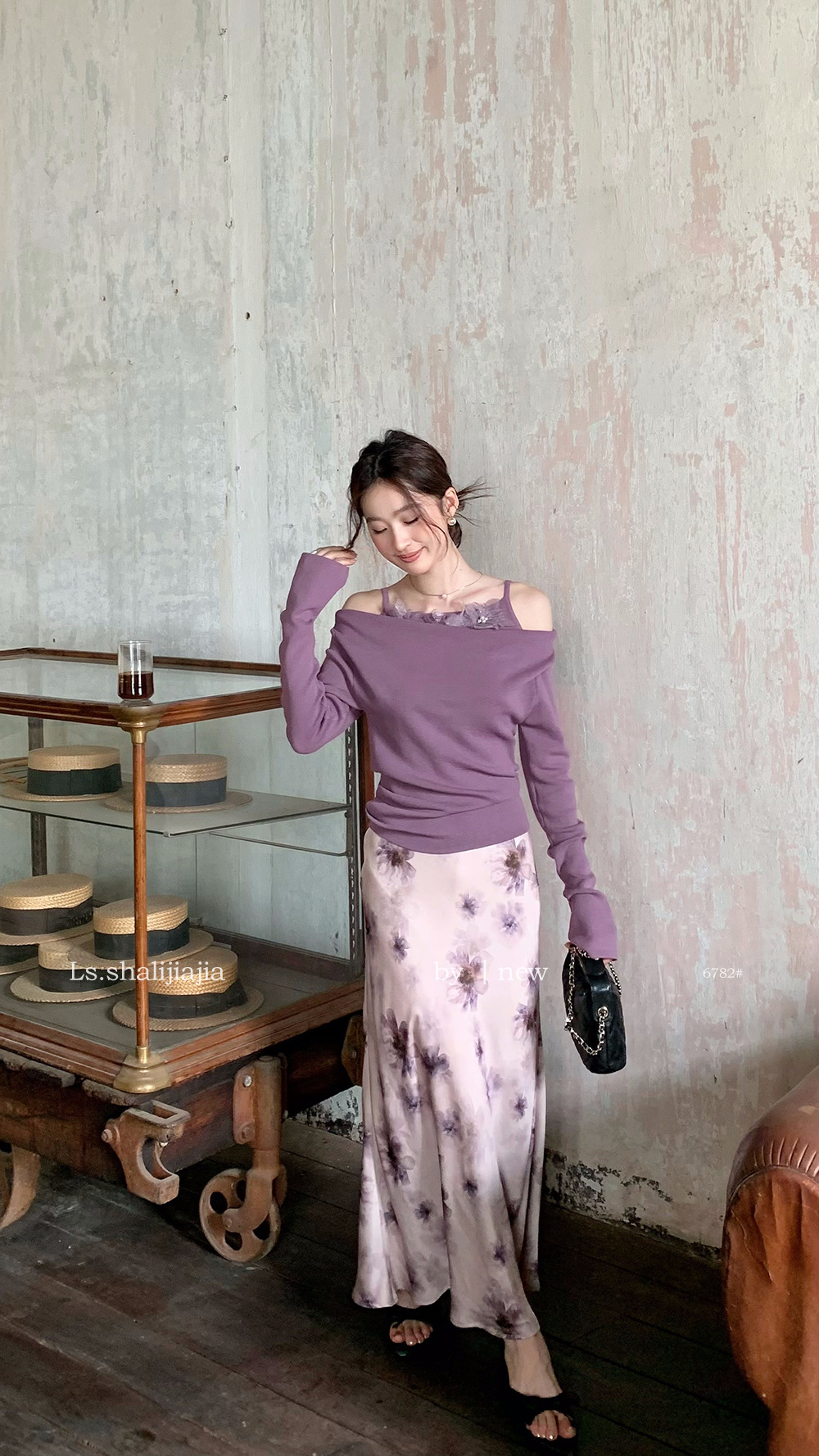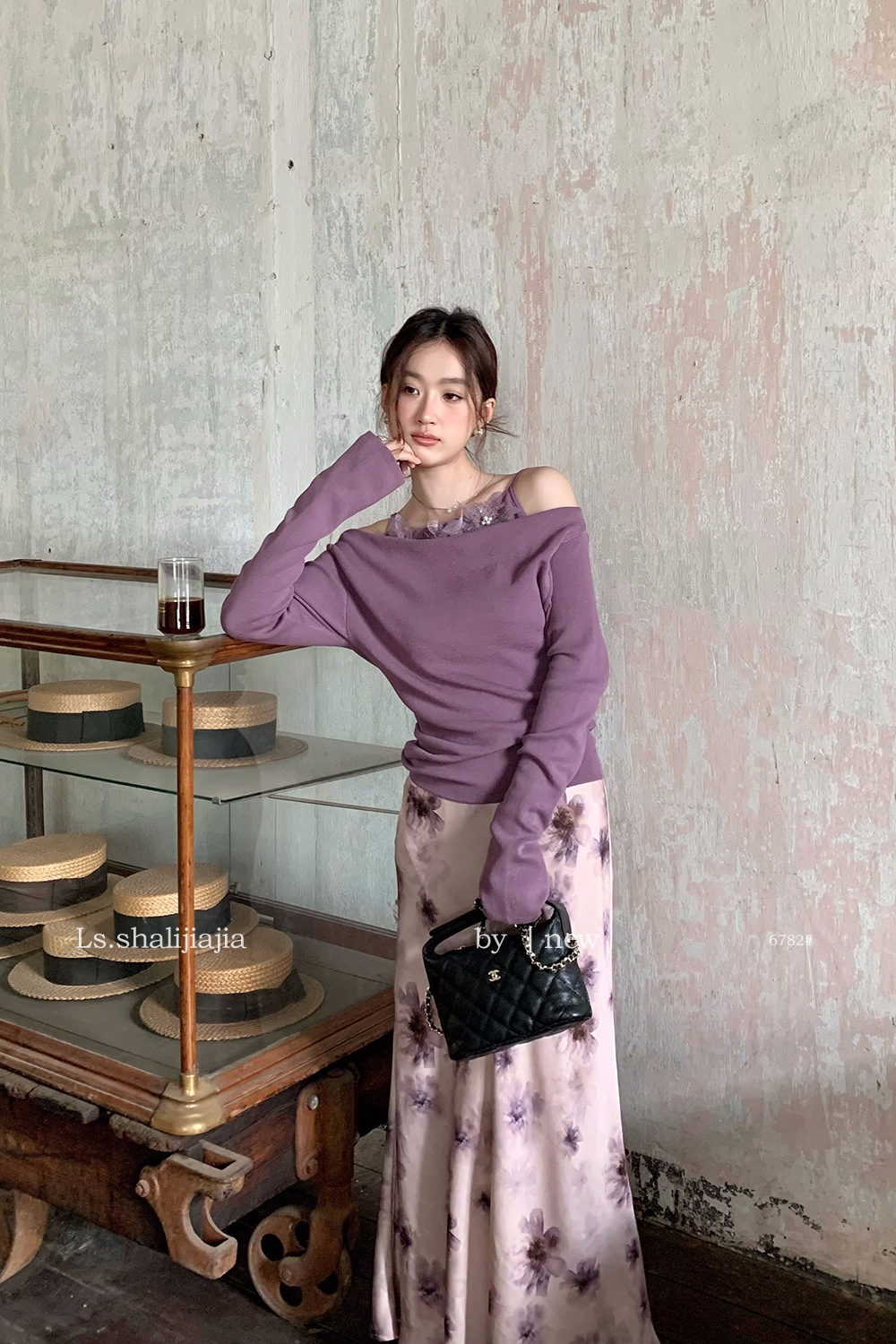 LS 달콤한 여성스러운 기질 우아하고 패셔너블한 슬림핏 페이크 투피스 니트 탑 25년 봄 신상품 6782