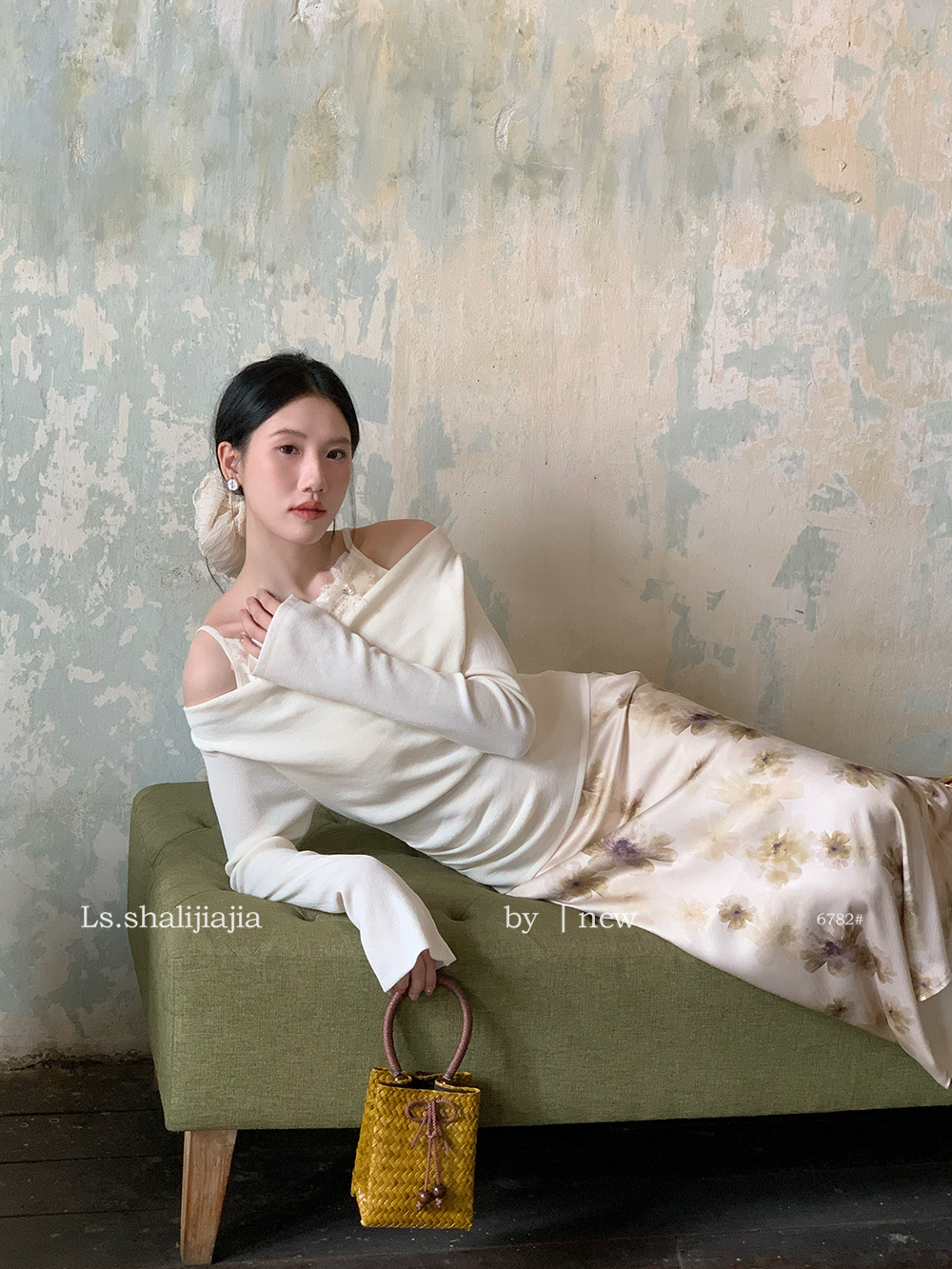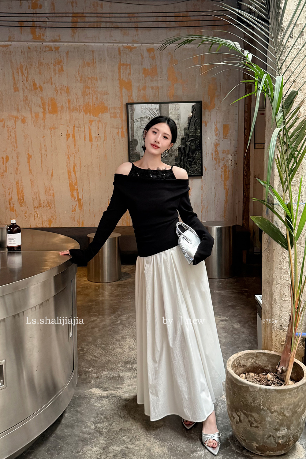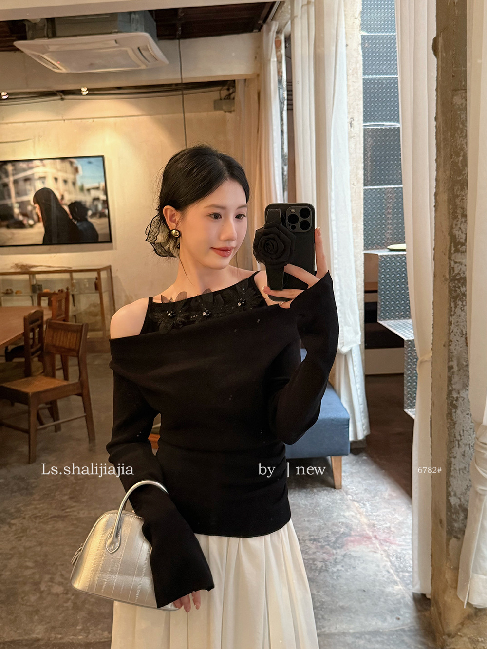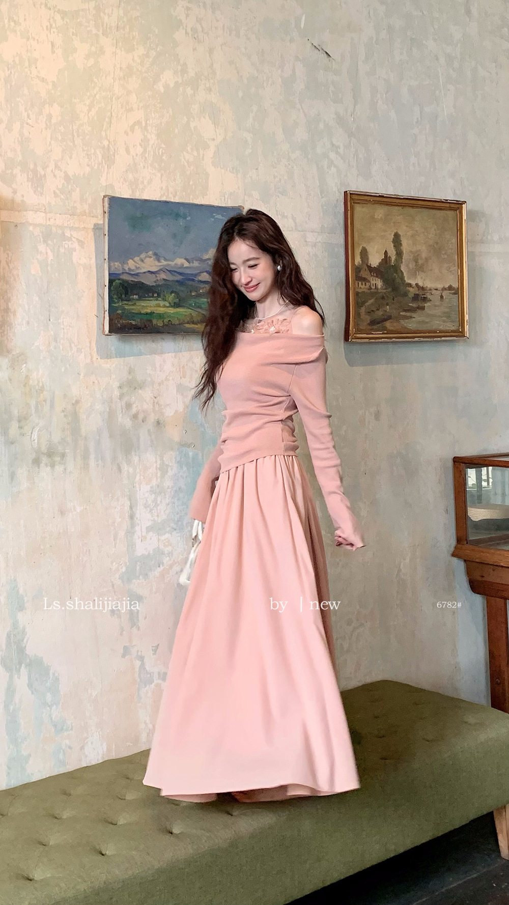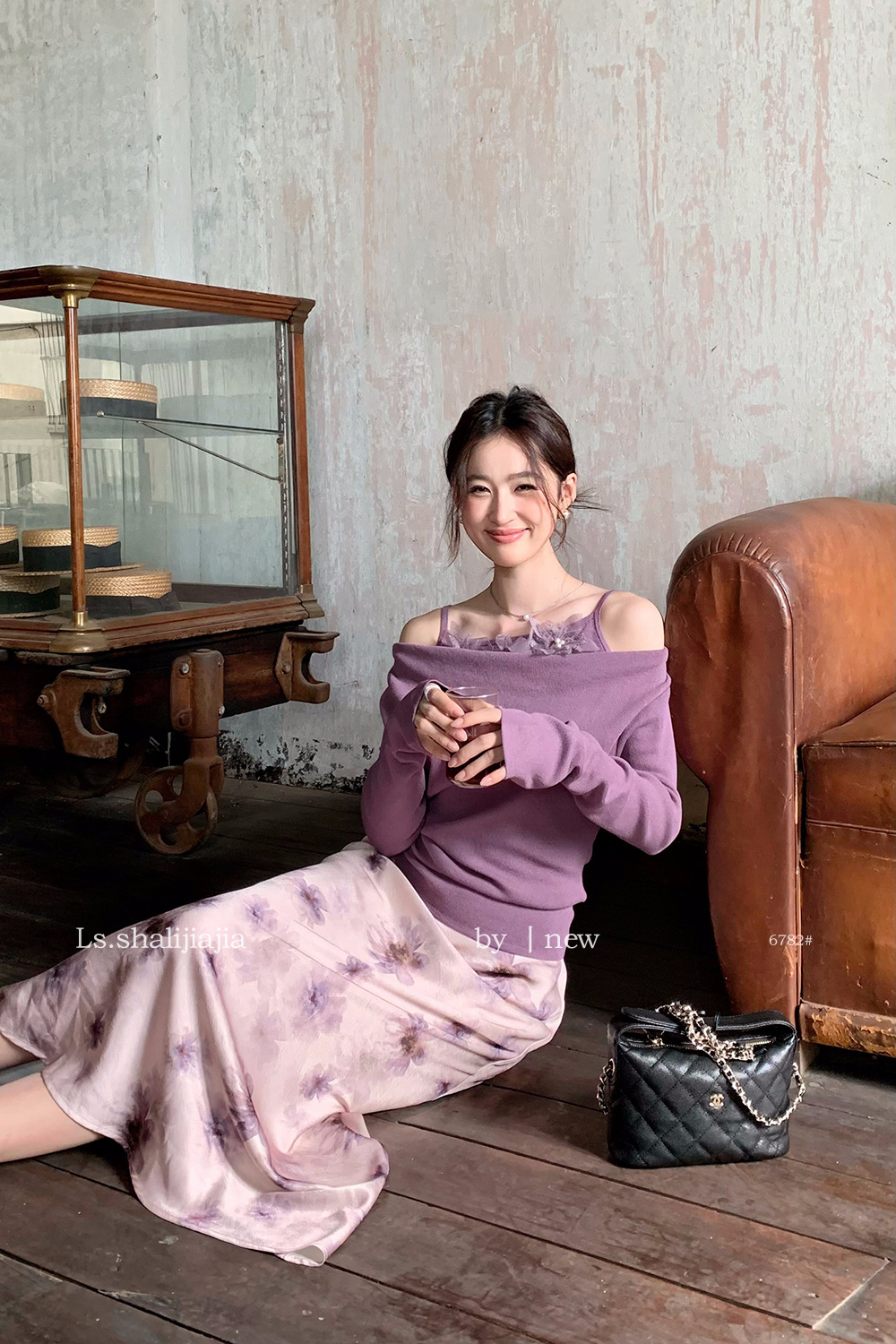 LS 달콤한 여성스러운 기질 우아하고 패셔너블한 슬림핏 페이크 투피스 니트 탑 25년 봄 신상품 6782