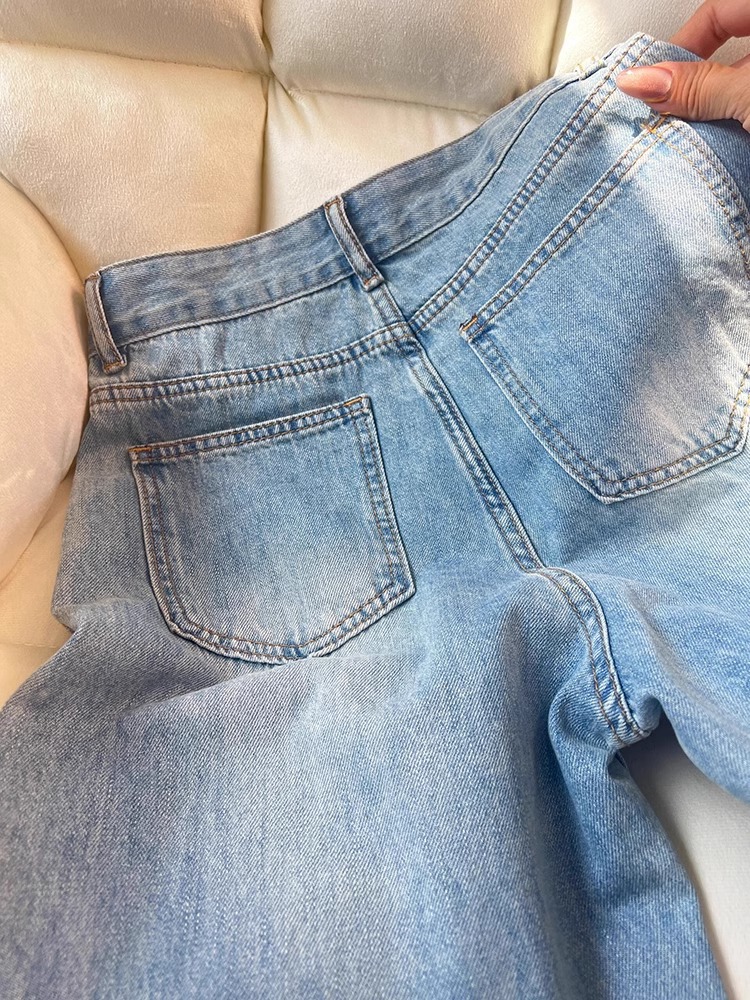 올해 인기 블루 하이 허리 와이드 레그 스트레이트 청바지 여성 봄 2025 새로운 패션 조커 팬츠스토어 가기