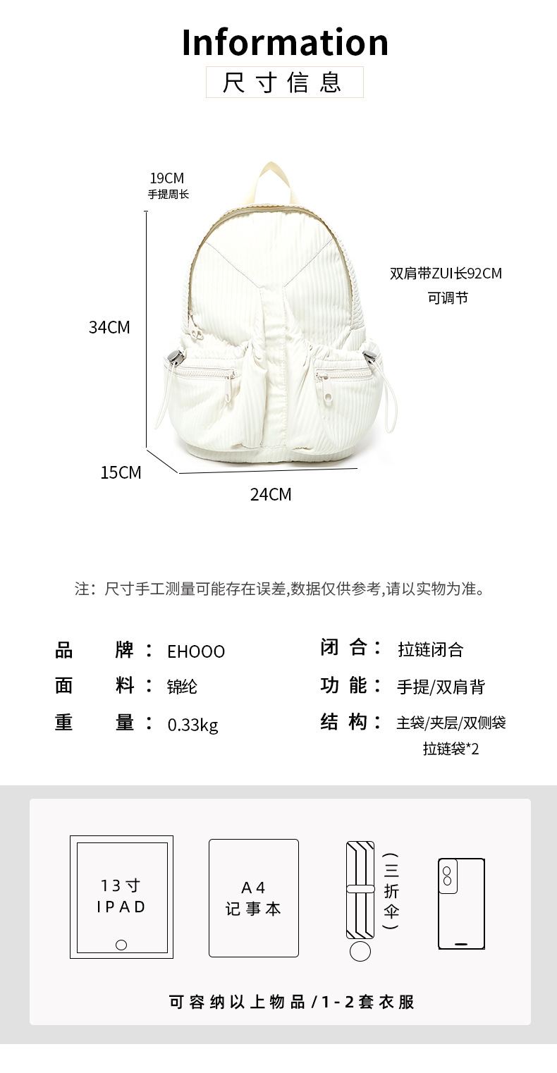 2025 가을 겨울 퍼프 주름 백팩 한국 스타일 경량 여행 대학생 가방 해외 여성 가방 출퇴근 백팩스토어 가기