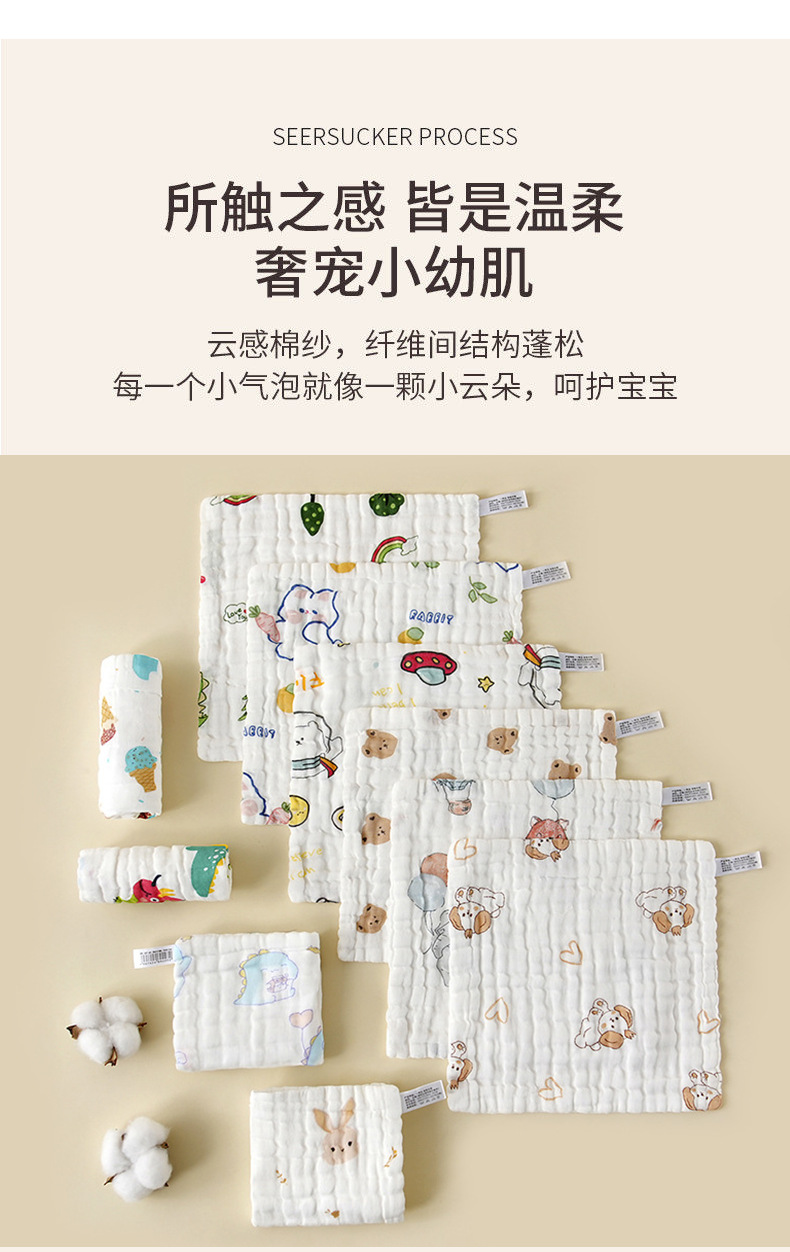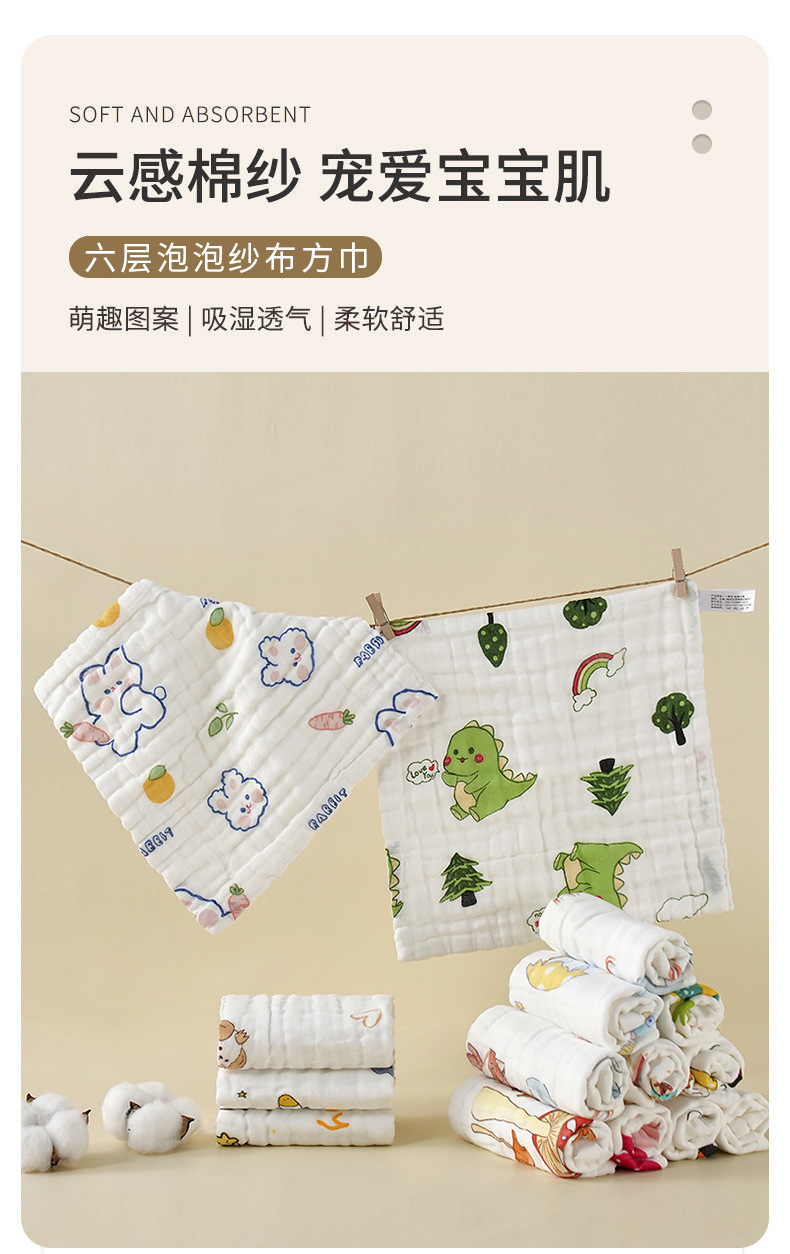 6 층면 거즈 스퀘어 타월 어린이 타월 시어 서커 흡수성 두꺼운 아기 클래스 타월 어린이 타월 대외 무역스토어 가기