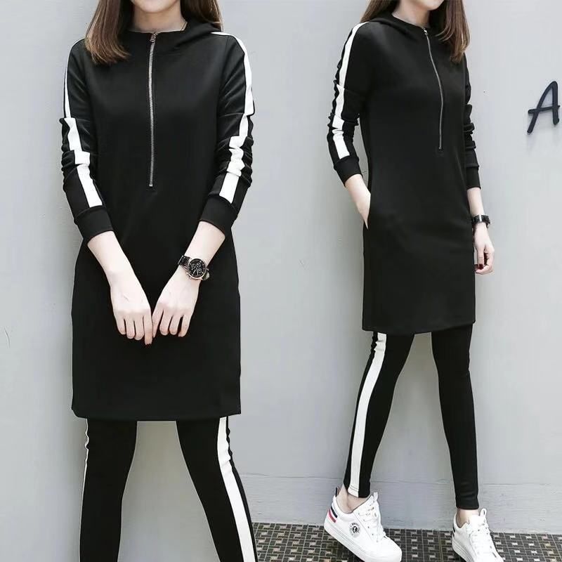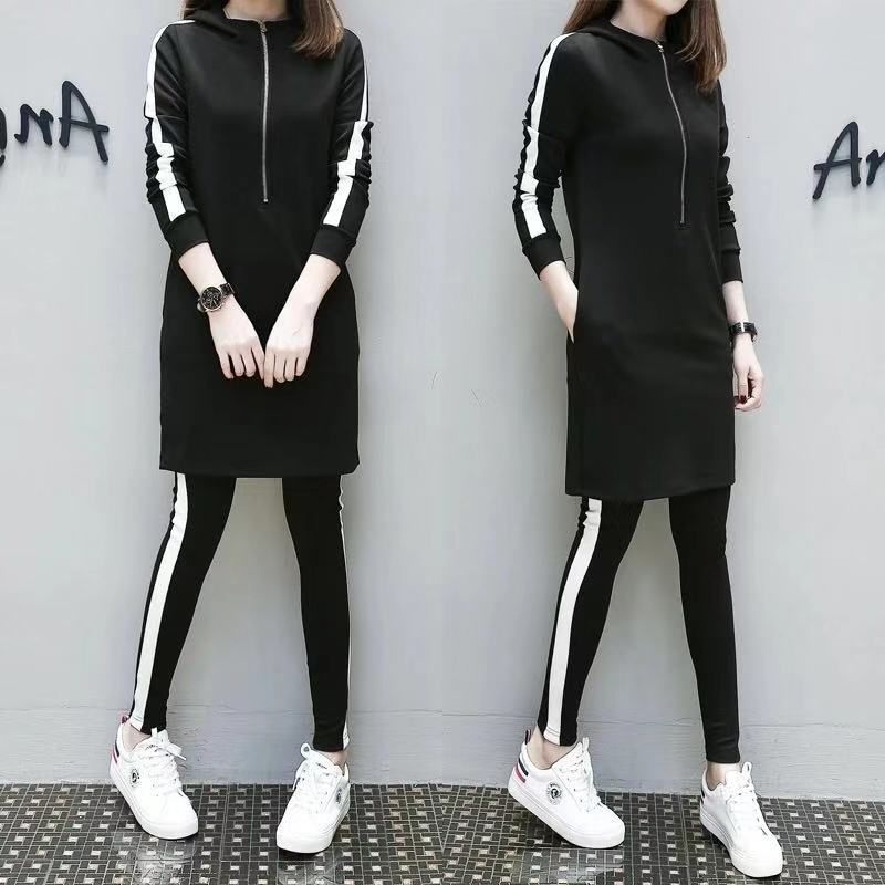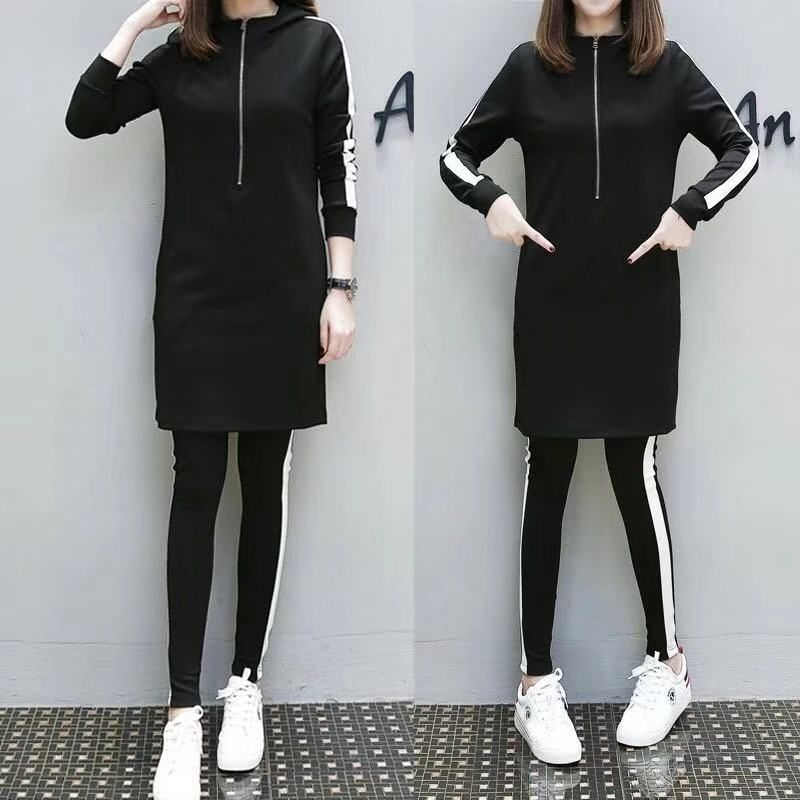 패션 세트 여성의 봄과 가을 플러스 사이즈 여성 캐주얼 스포츠 세트 여성 한국식 느슨한 슬리밍 통통녀 투피스 세트스토어 가기