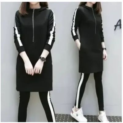 패션 세트 여성의 봄과 가을 플러스 사이즈 여성 캐주얼 스포츠 세트 여성 한국식 느슨한 슬리밍 통통녀 투피스 세트