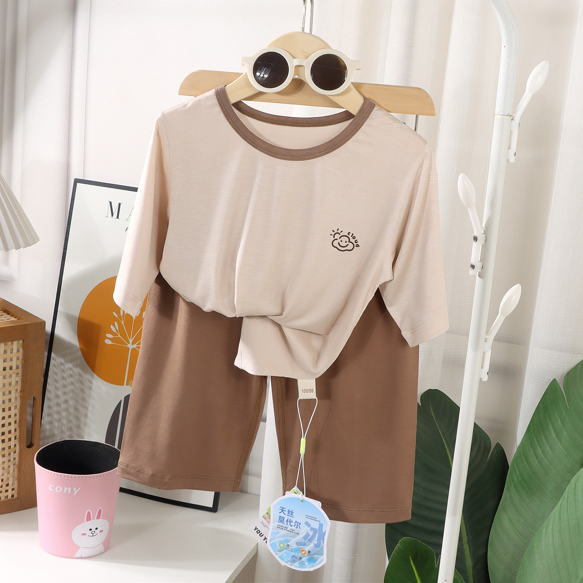 새로운 어린이 집 옷 파자마 텐셀 모달 소녀 세트 소년 얇은 뼈없는 여름 에어컨 옷