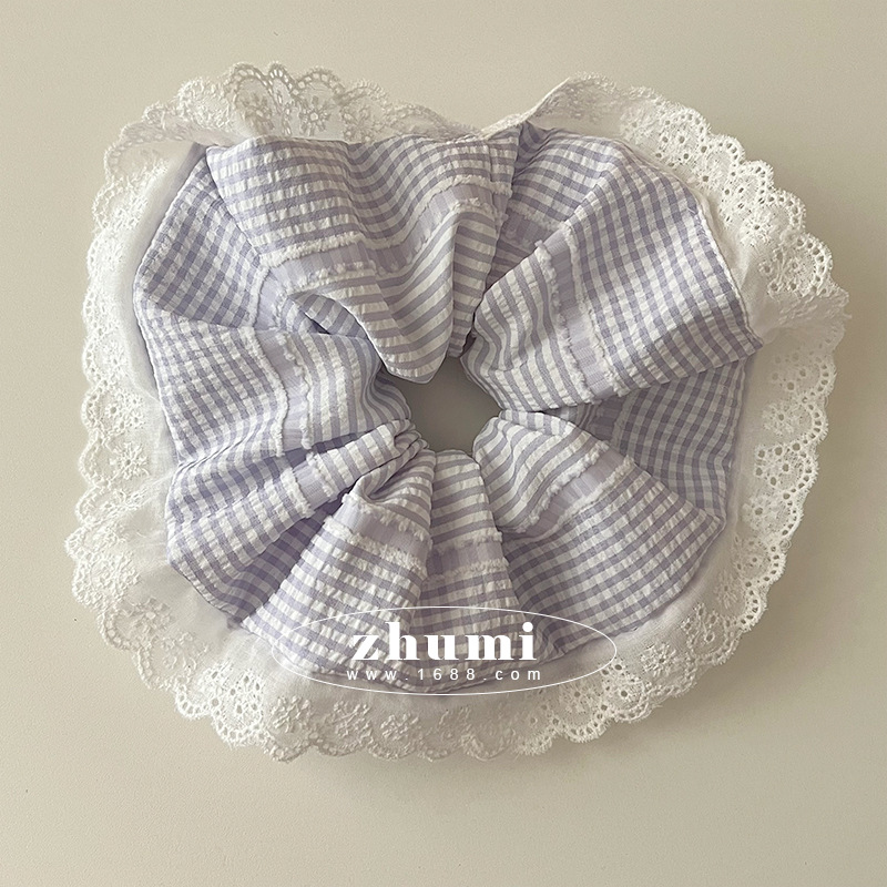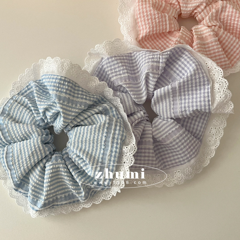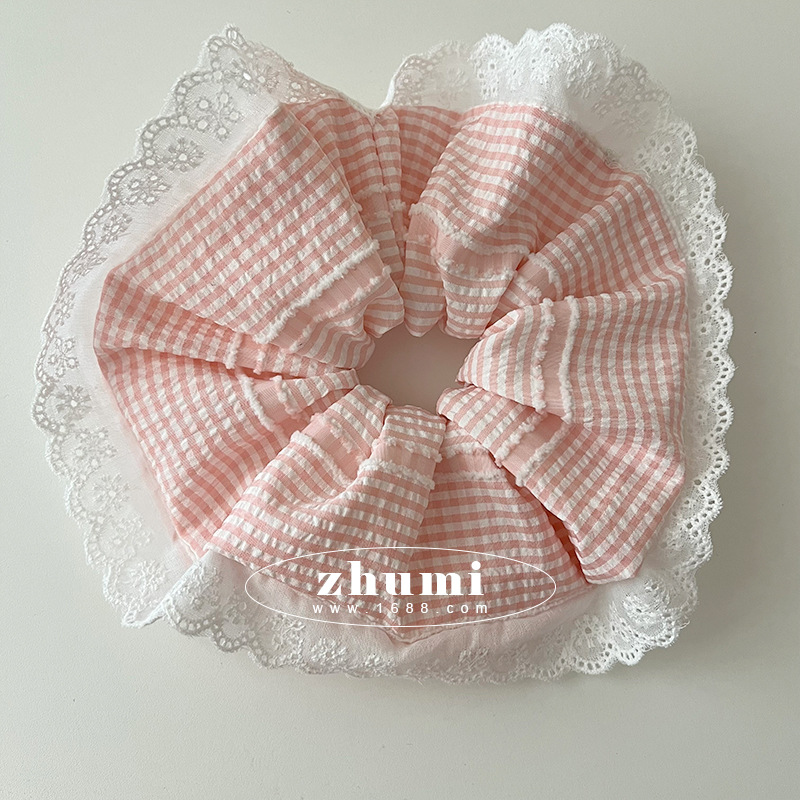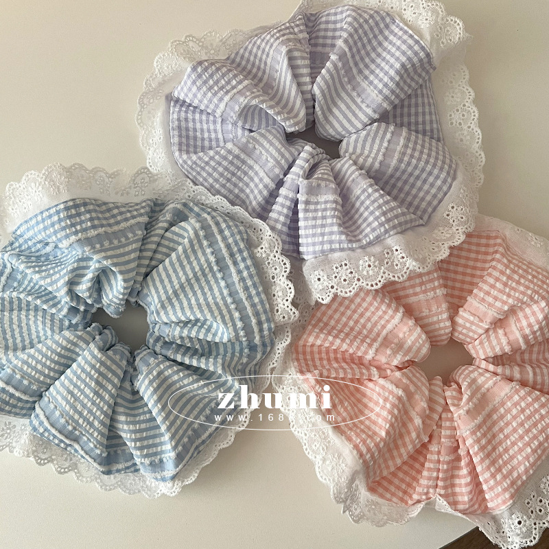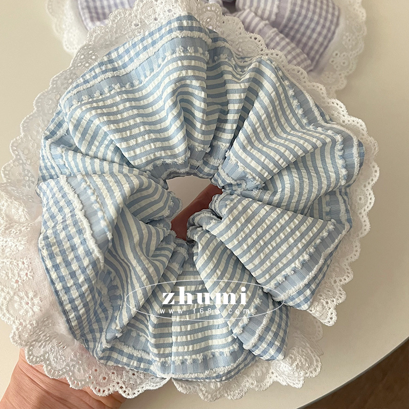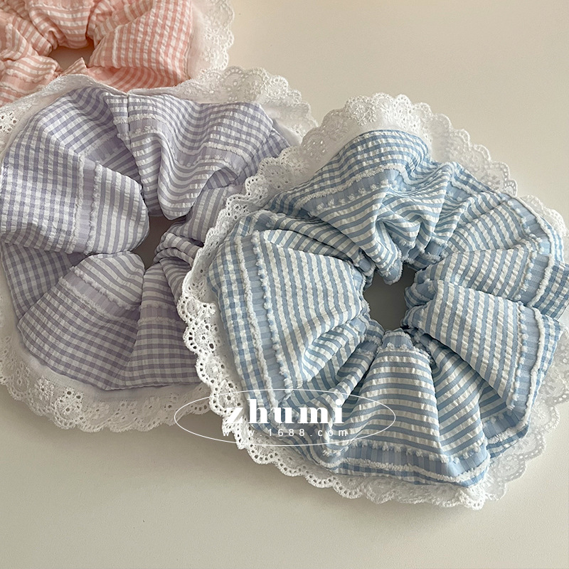 한국 스타일 줄무늬 레이스 소녀 스타일 대형 장내 헤어 링 달콤한 매일 올 매치 헤어 링 여성 발레 스타일 페이테일 헤어 액세서리