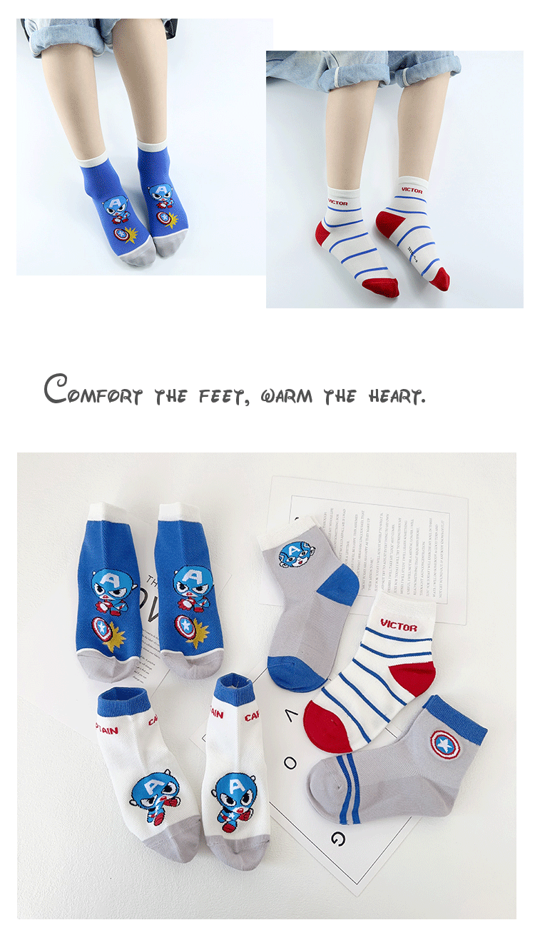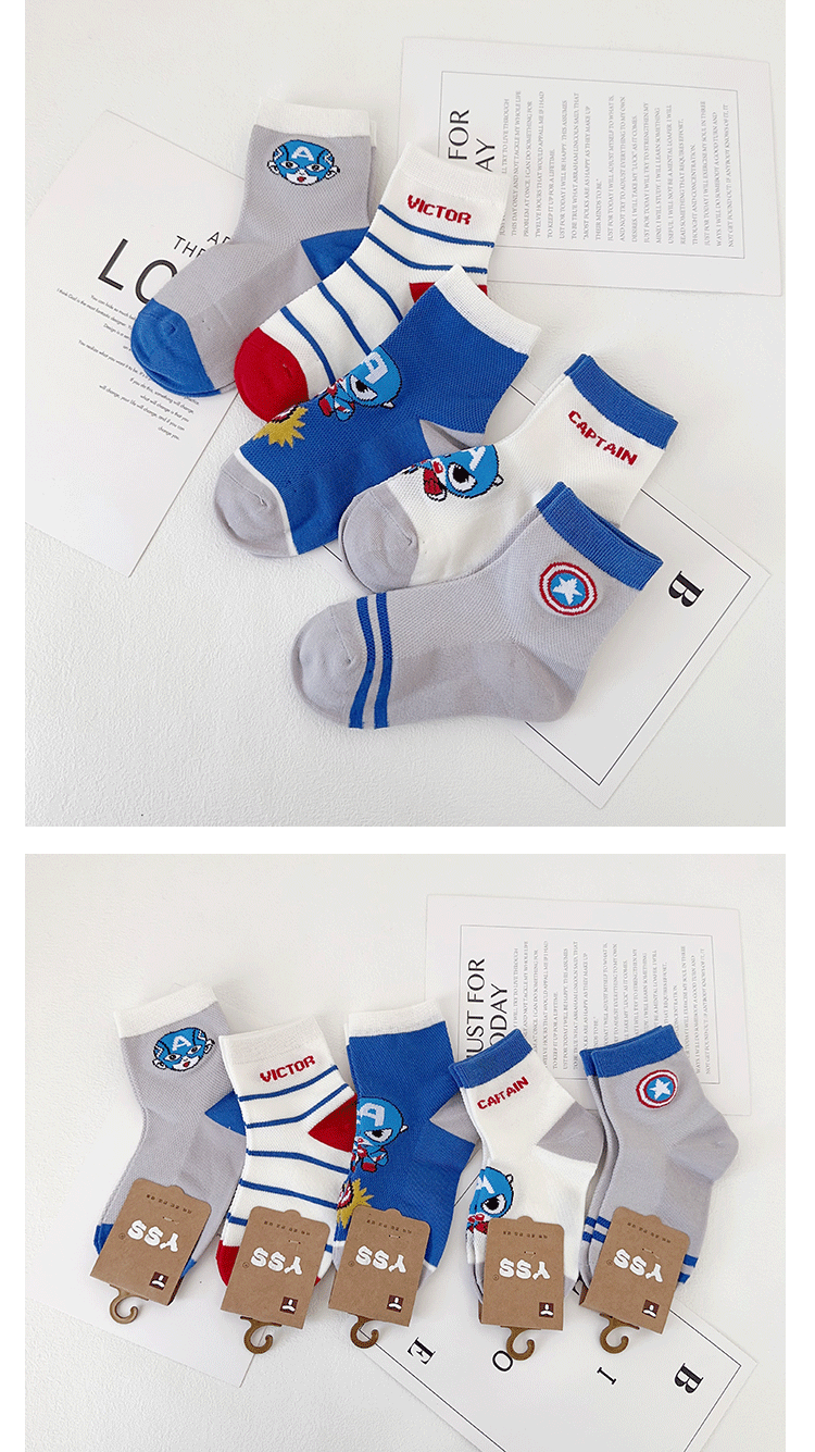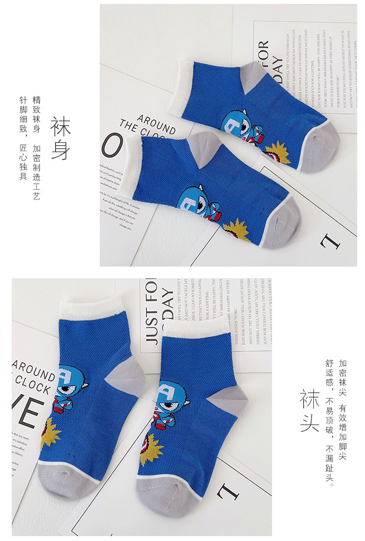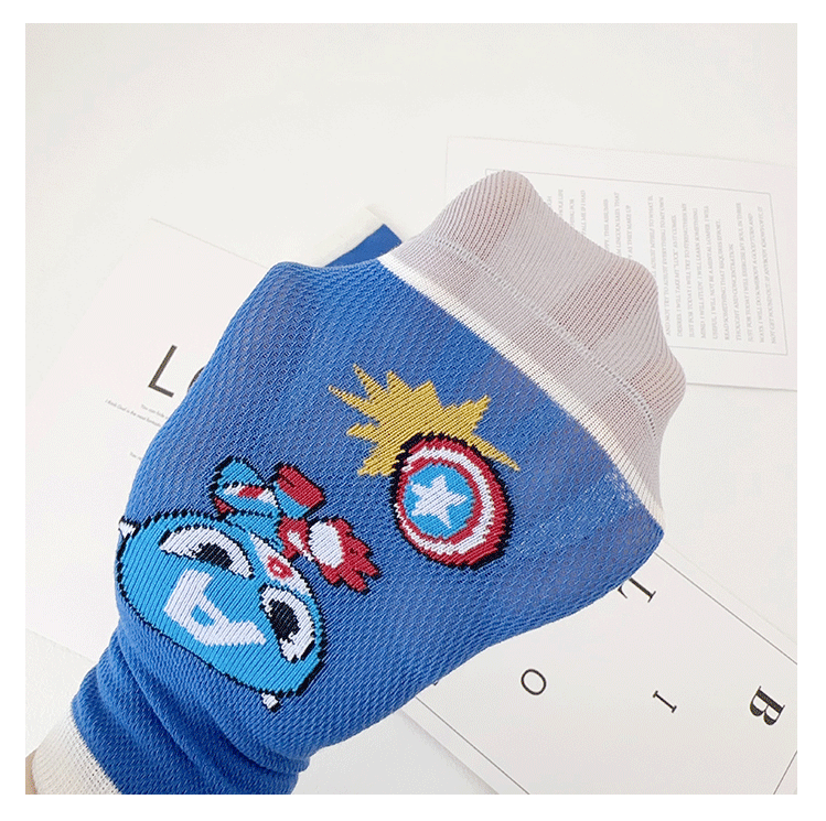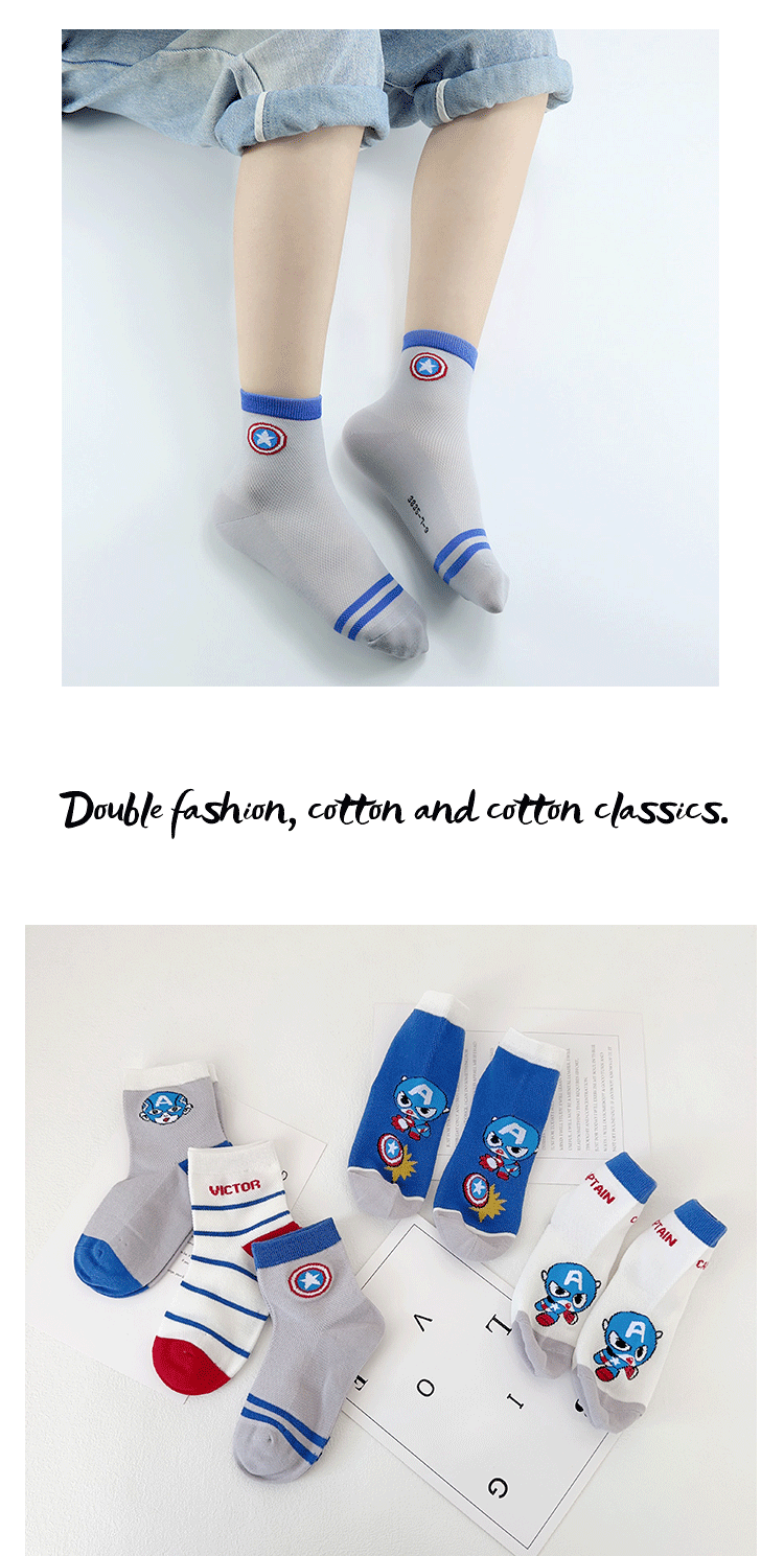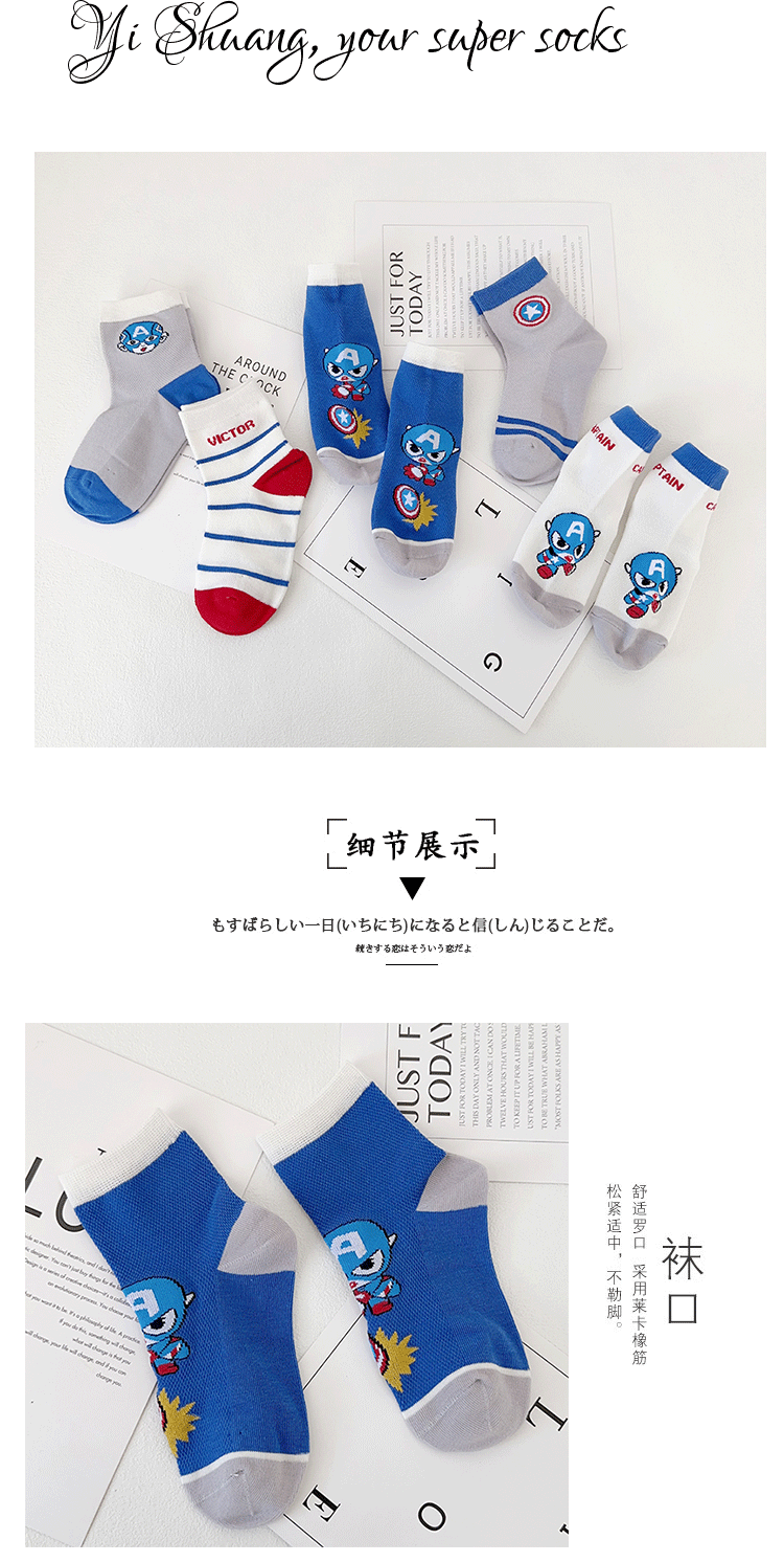 Yi Shuang 어린이 양말 여름 새로운 메쉬 통기성 만화 캡틴 아메리카 짧은 양말 빗 코튼 보이즈 면 양말스토어 가기