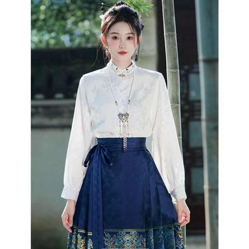 블루 위빙 골드 메이크업 꽃 말 얼굴 스커트 새로운 중국 스타일 국가 스타일 개선 된 명나라 스타일 한푸 성인 여성 데일리 세트 봄