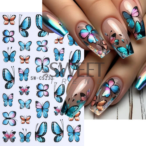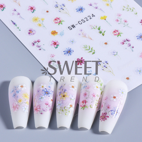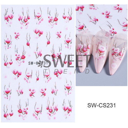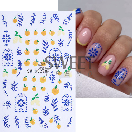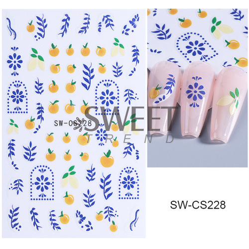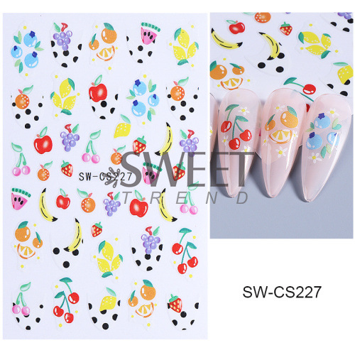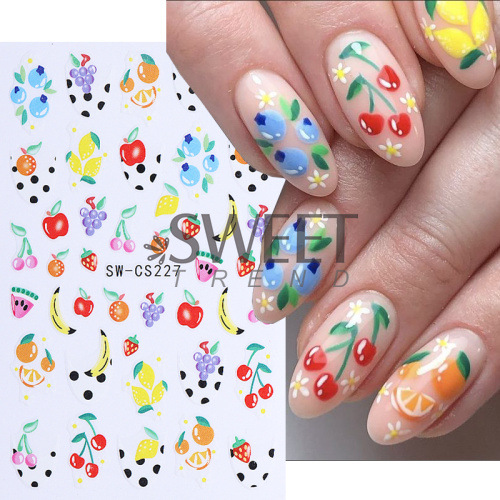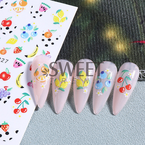 국경 간 새로운 네일 아트 스티커 도매 바람 봄 벚꽃 나비 과일 체리 3D 접착제 네일 데칼