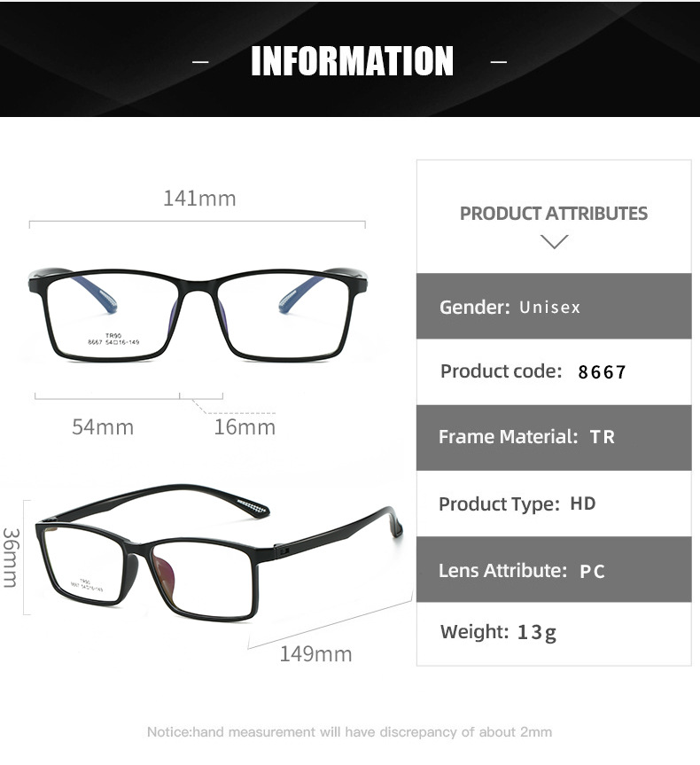 초경량 TR 2 색 근시 안경 프레임 패션 새로운 안티 블루 라이트 안경 프레임 감광 변색 학생 평면 렌즈