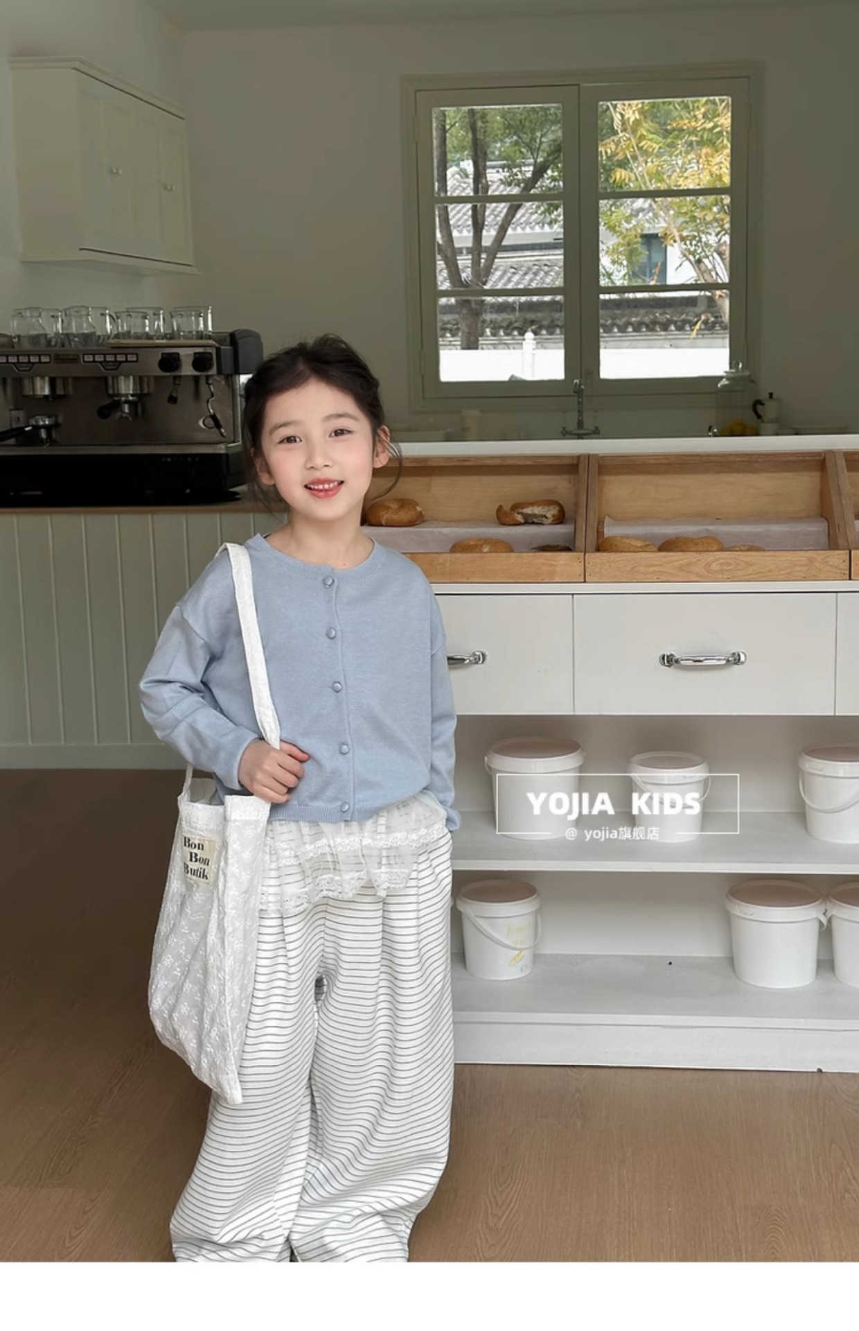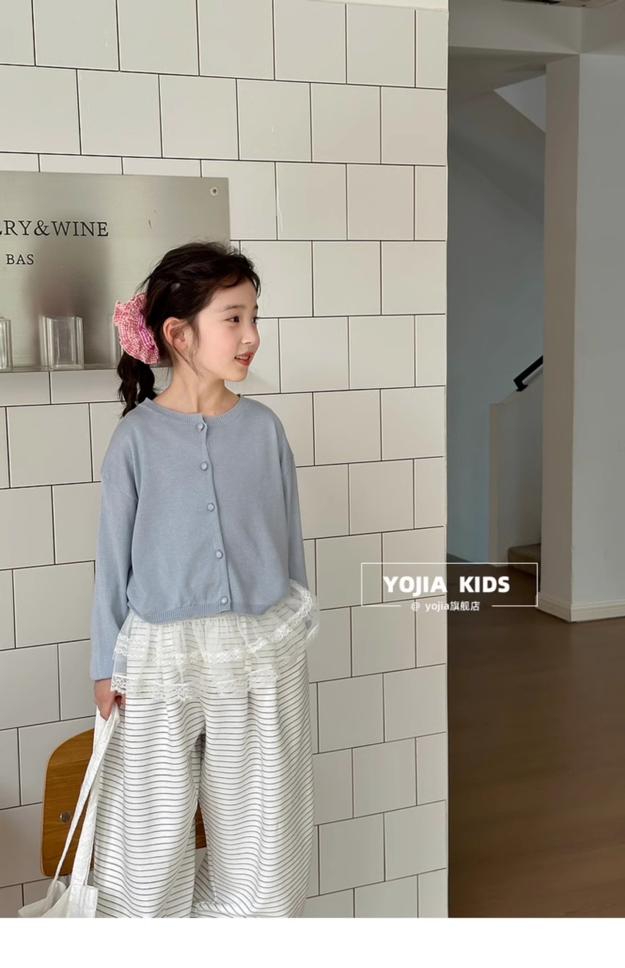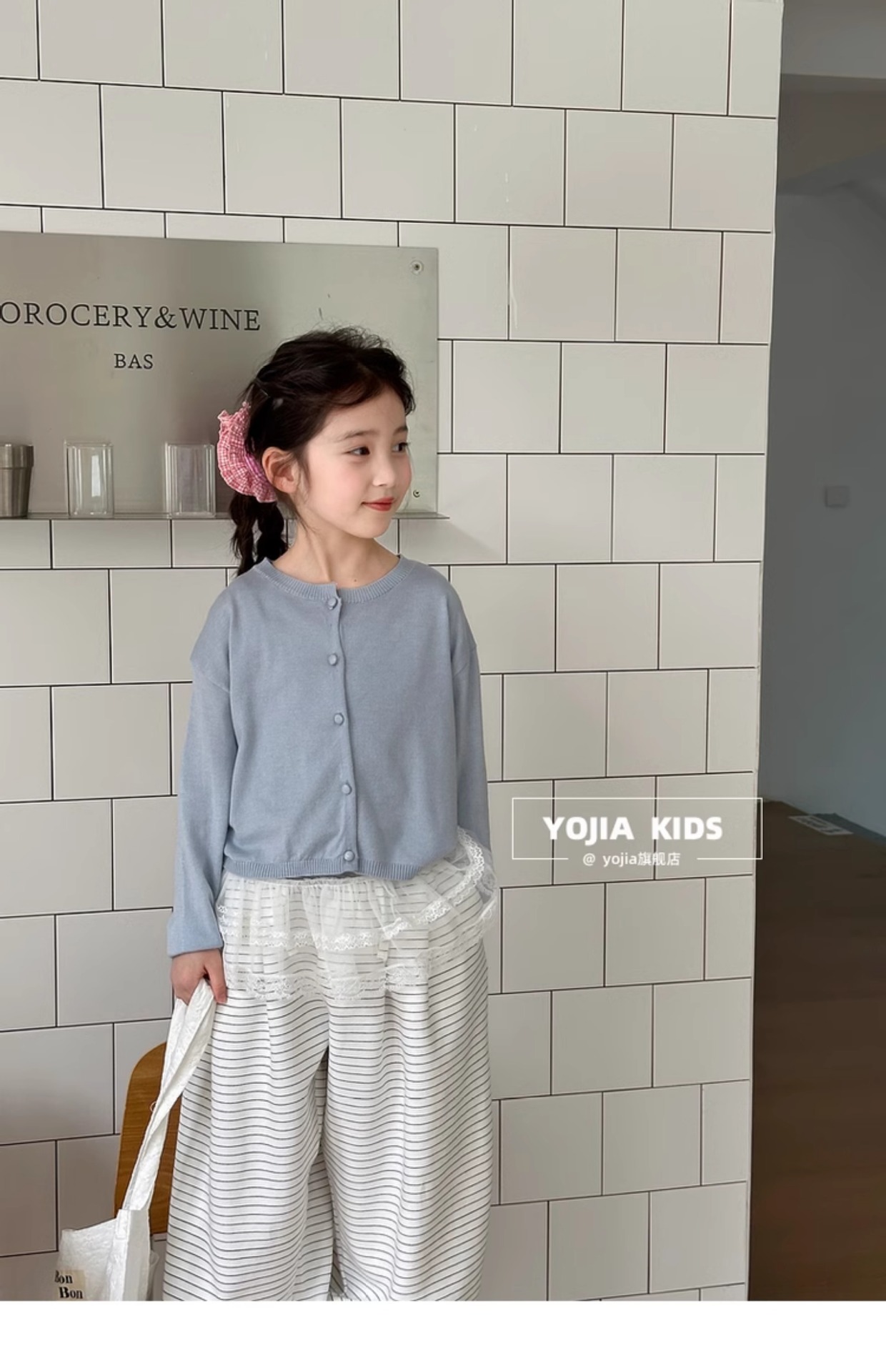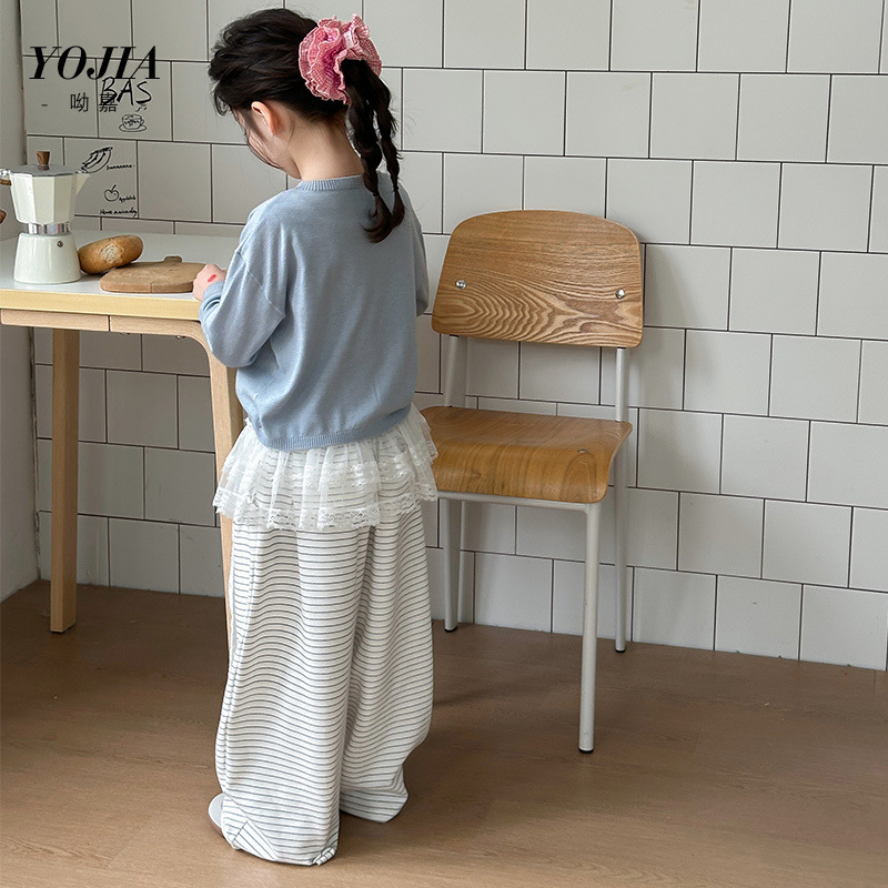 YOJIA Girls 'Sweater 봄과 가을 2025 새로운 한국 스타일 서양식 중대형 어린이 셔츠 봄 어린이 니트 카디건스토어 가기