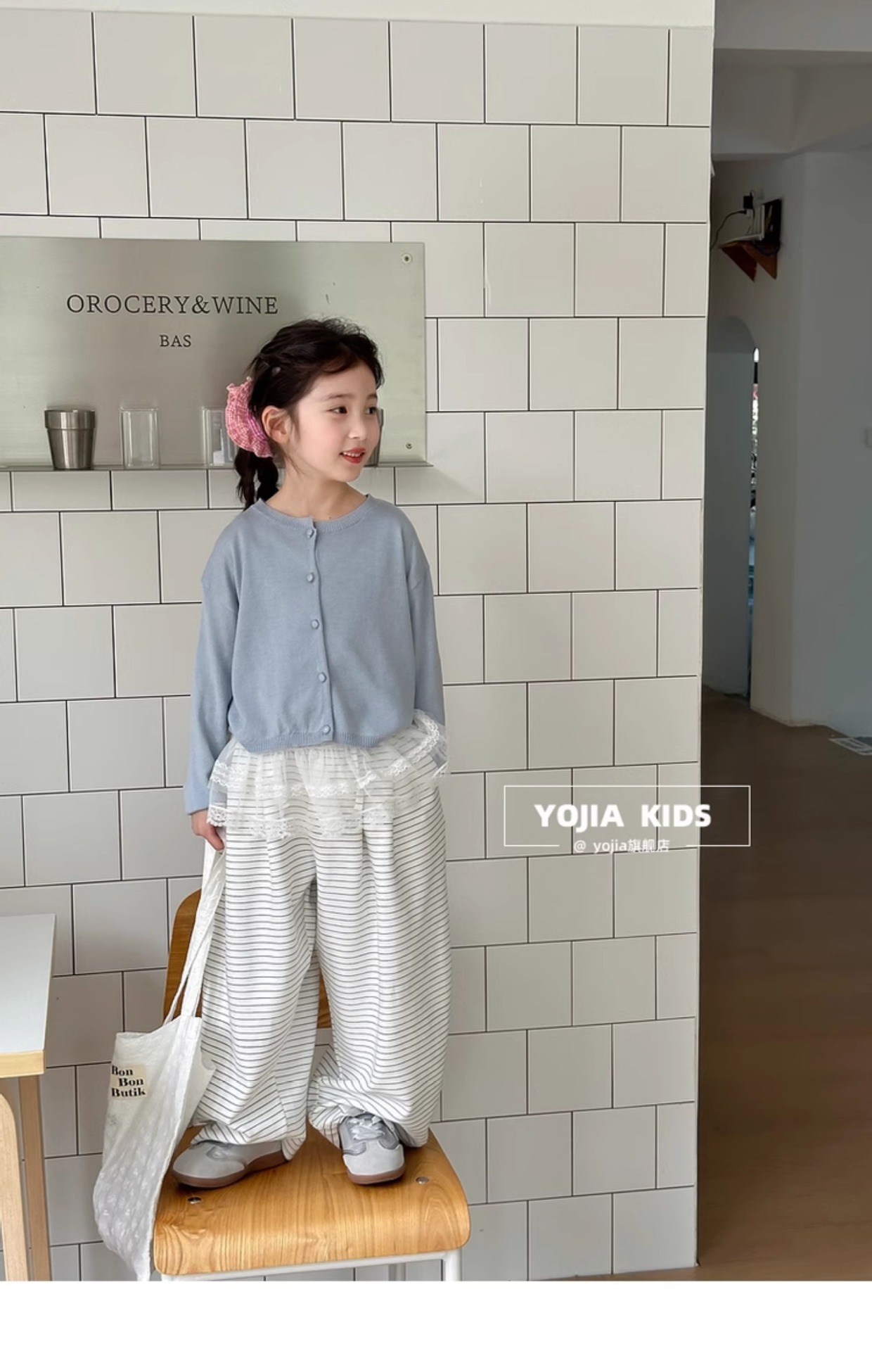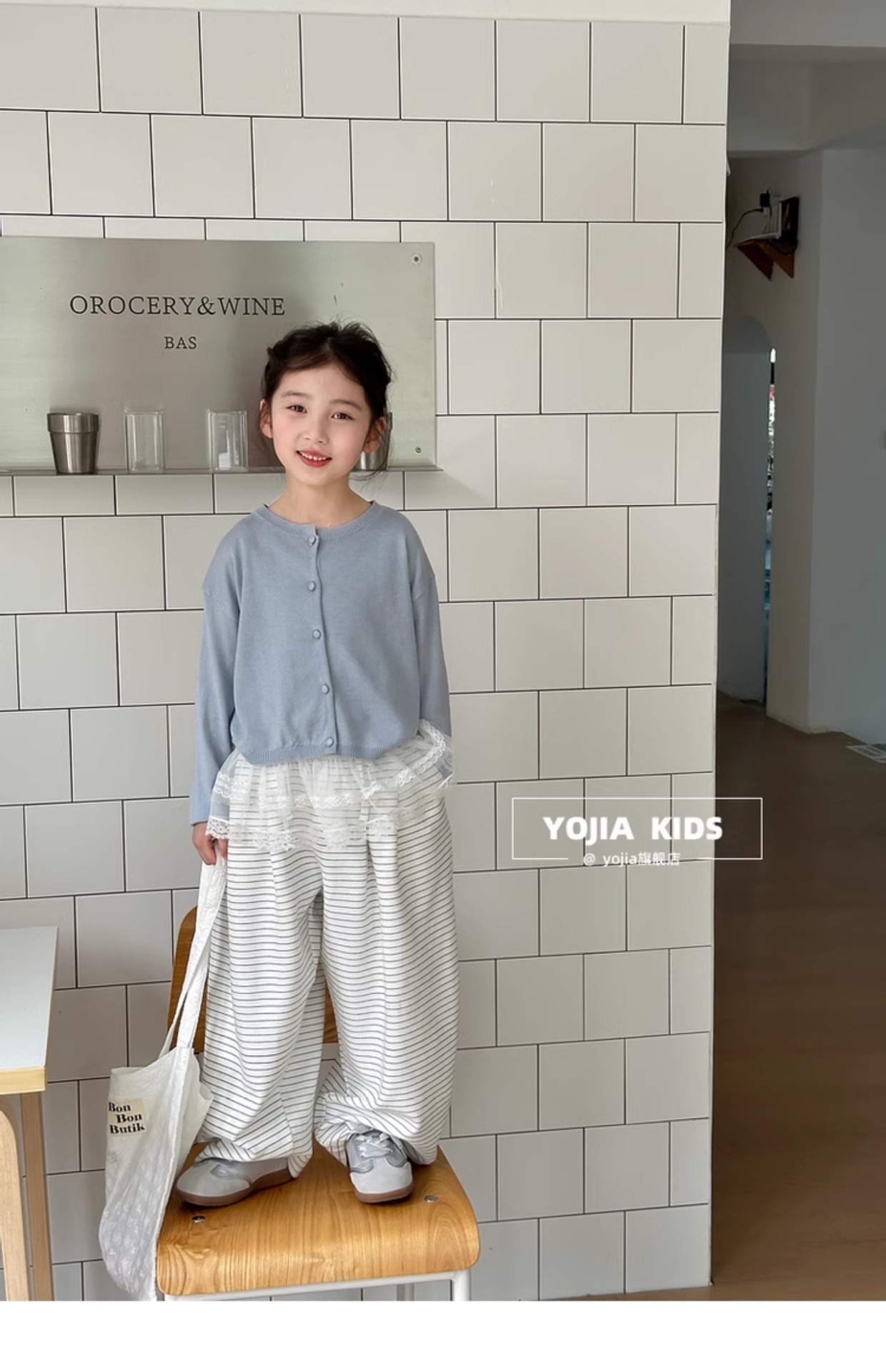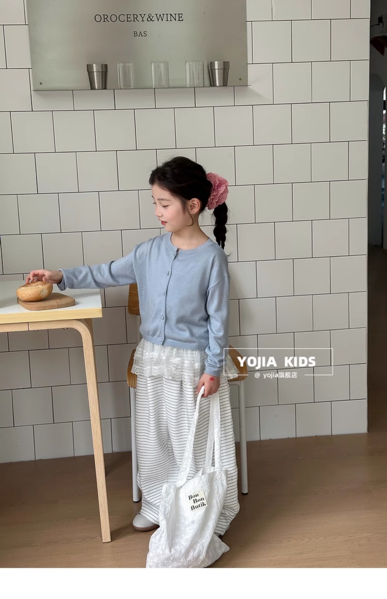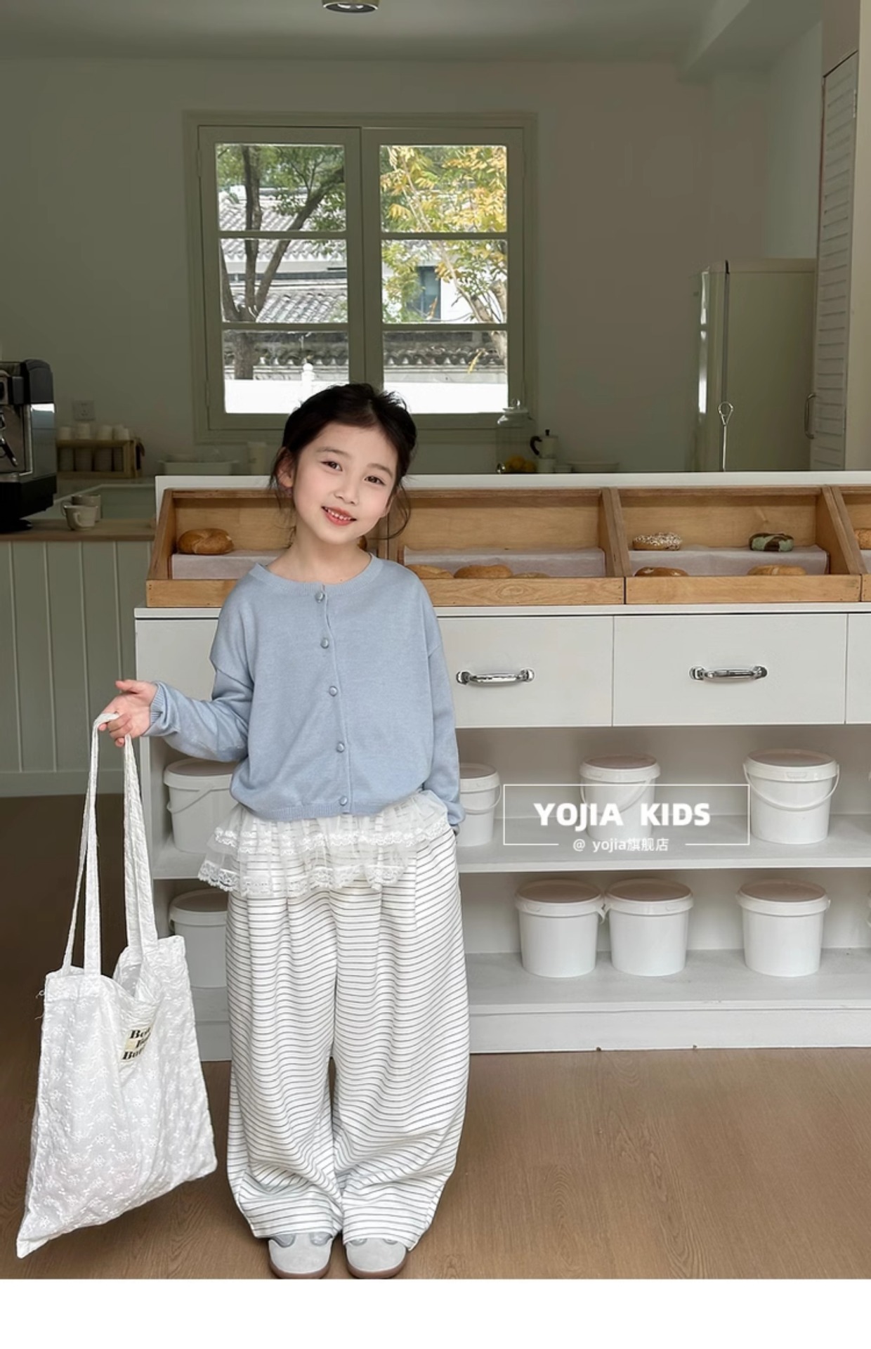 YOJIA Girls 'Sweater 봄과 가을 2025 새로운 한국 스타일 서양식 중대형 어린이 셔츠 봄 어린이 니트 카디건스토어 가기