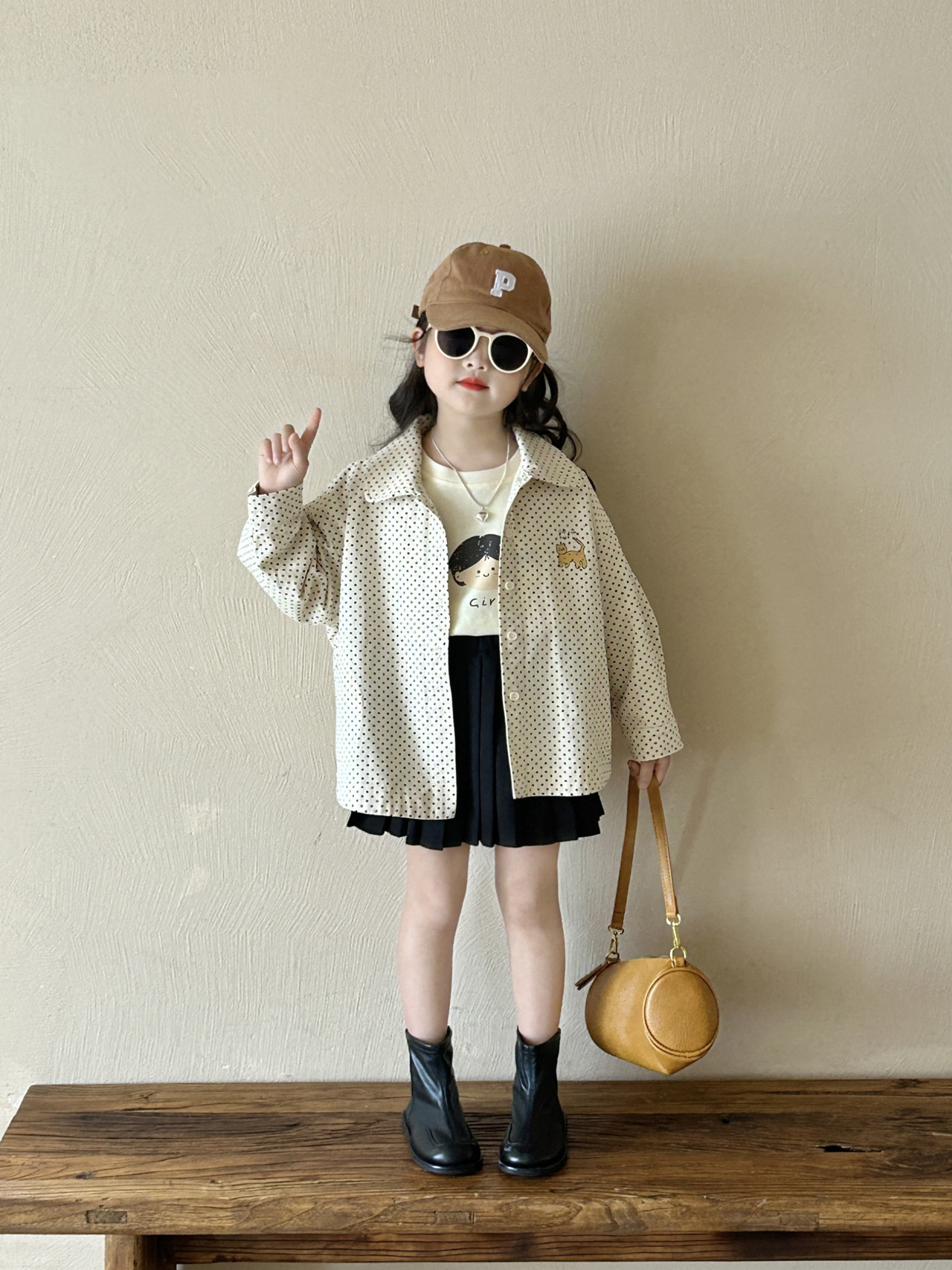 소녀의 서양식 코트 2025 봄과 가을 새로운 어린이 긴 소매 티셔츠 주름 치마 어린이 도트 옷깃 탑스토어 가기