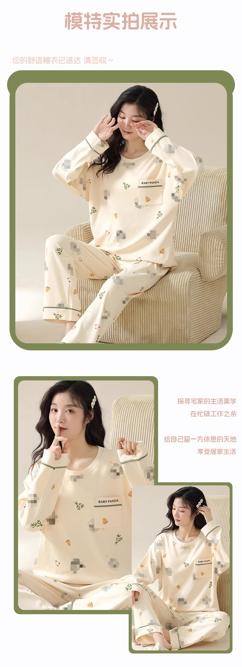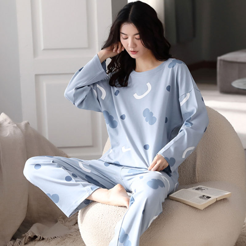 심플 스타일 하이 엔드 한국 스타일 잠옷 여성 긴 소매 2025 봄 가을면 느슨한 홈 의류 세트 착용스토어 가기