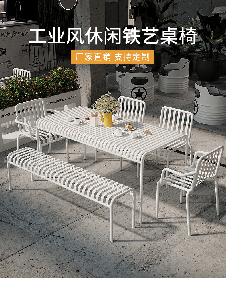 야외 안뜰 테이블과 의자 우유 차 가게 카페 산업 스타일 창조적 인 레저 지역 레이아웃 발코니 작은 차 테이블과 의자 조합