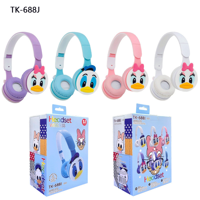 헤드 마운트 무선 블루투스 헤드셋 스틸 국경 개인 모델 TK-688G 만화 귀여운 헤드셋 제조 업체 도매
