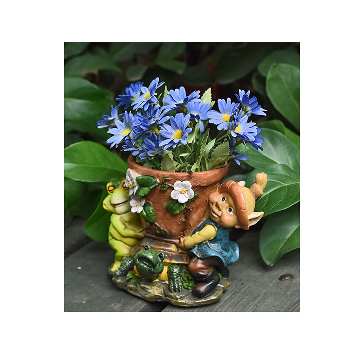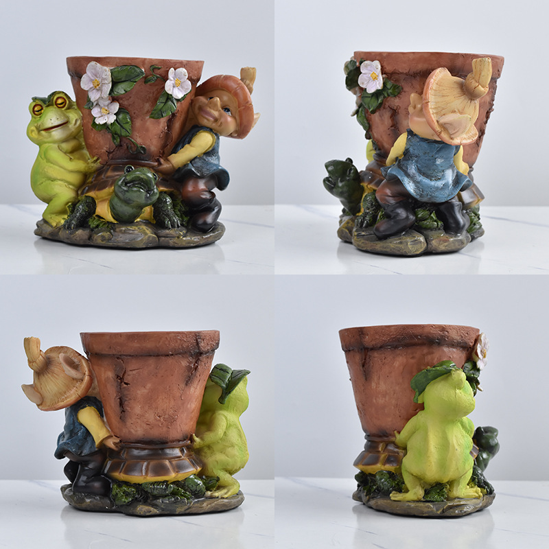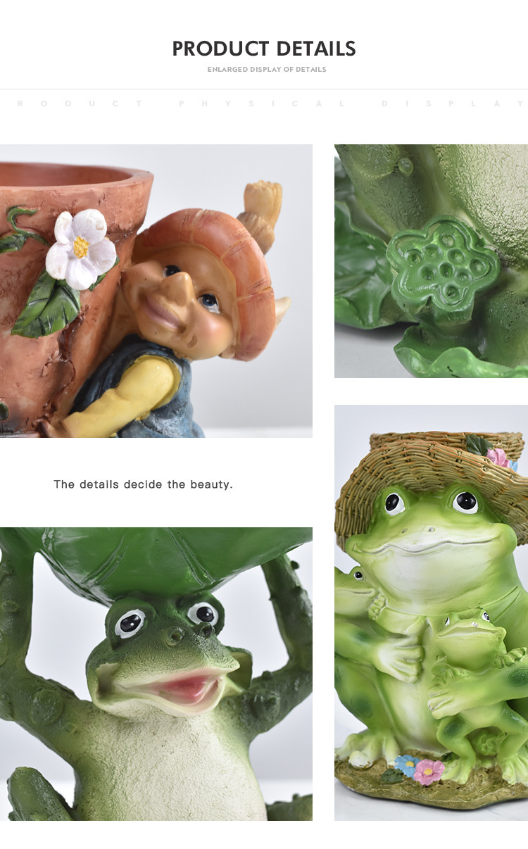 아마존 야외 개구리 저장 새 저장 장식품 정원 수지 공예 개구리 꽃 냄비 야외 장식