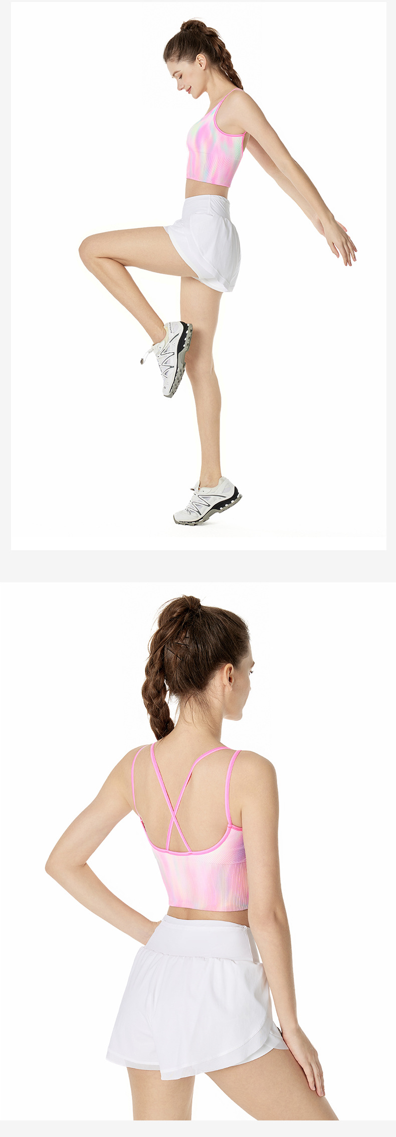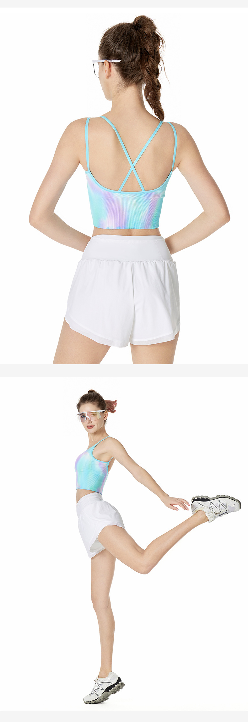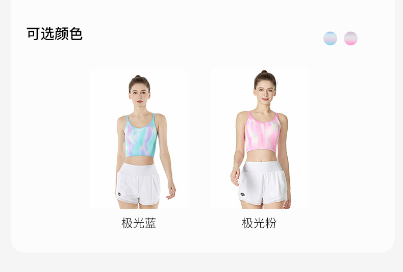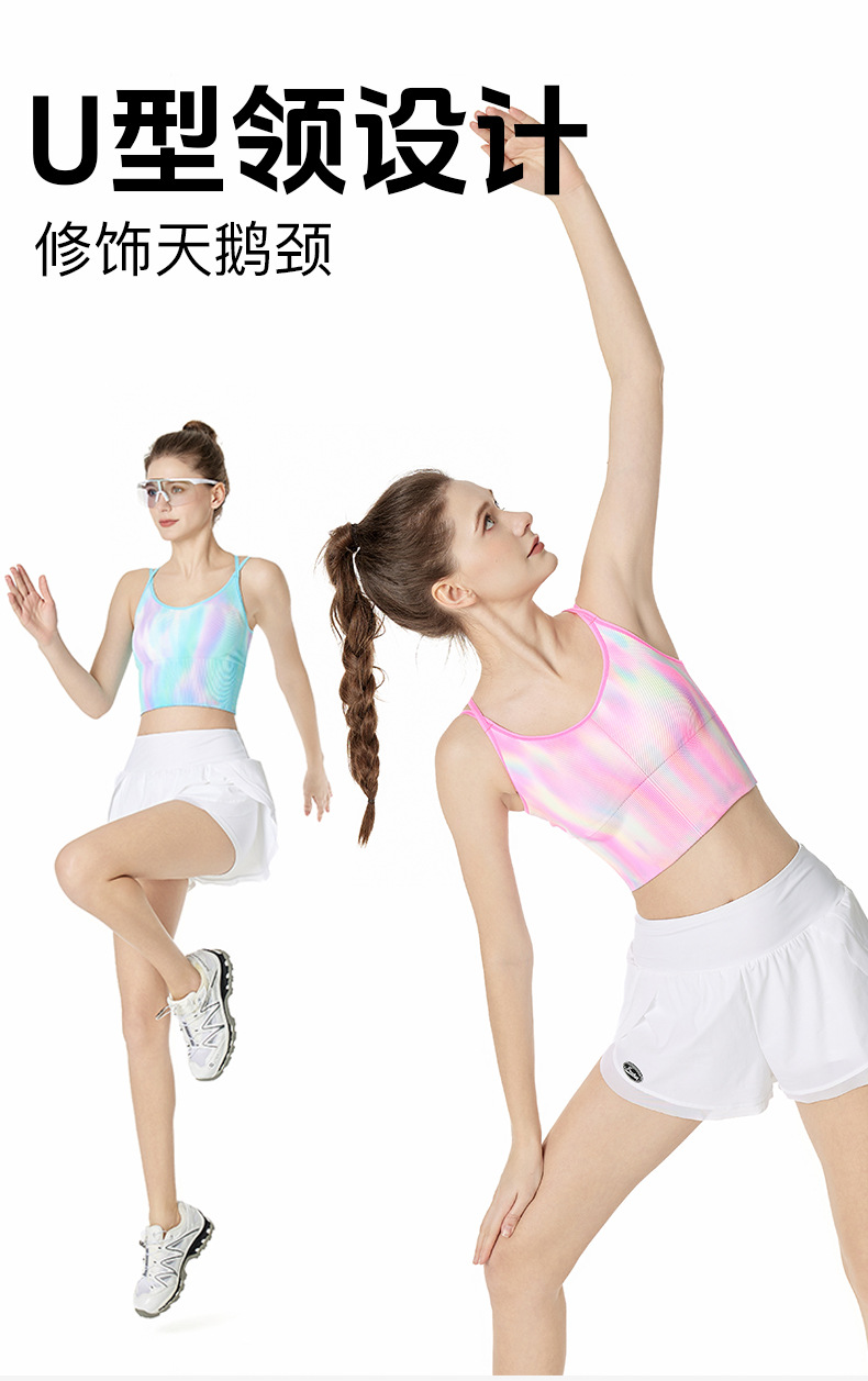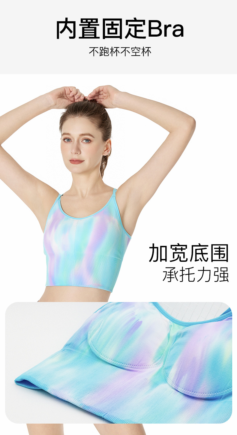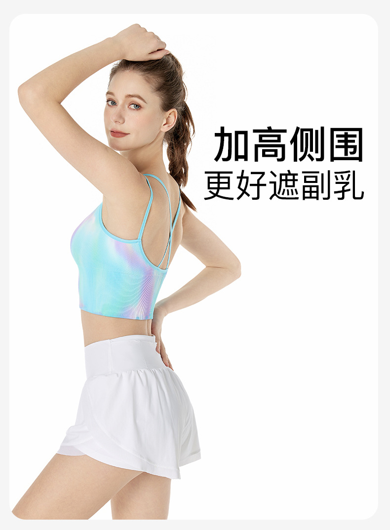 LULU 같은 높은 탄성 통기성 요가 오로라 매직 컬러 더블 어깨 스트랩 스포츠 브라 타이 염색스토어 가기