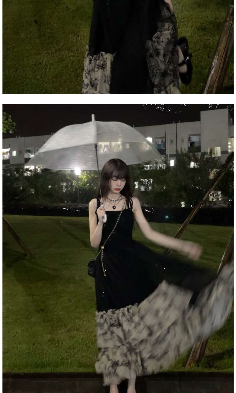 헵번 스타일 블랙 꽃 슬링 원피스 여성 여름 새로운 프랑스 스타일 복고풍 타이트 허리 디자인 슬림 핏 긴 원피스스토어 가기