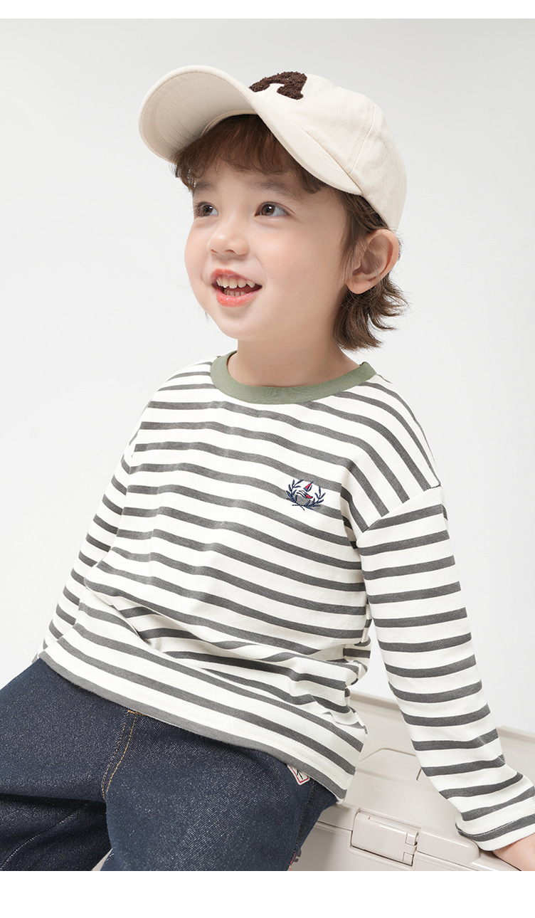 소년 항균 코튼 스트라이프 긴팔 티셔츠 가을 봄, 가을 아동 의류 아동용 베이비 셔츠 탑 가을스토어 가기