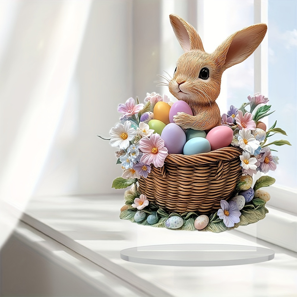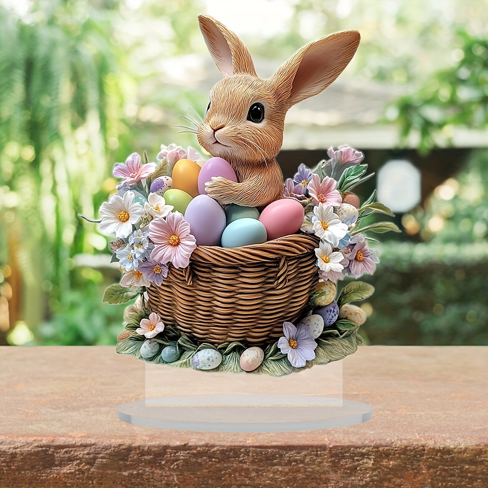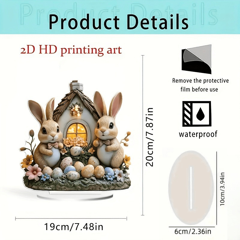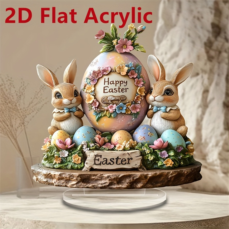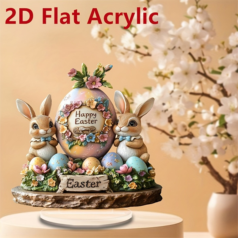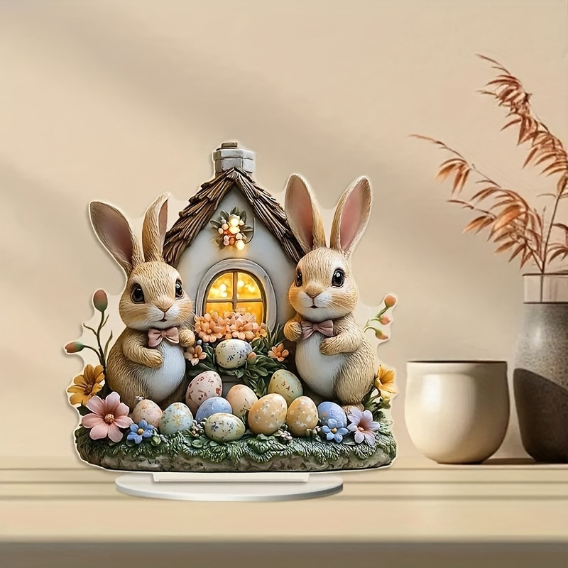 국경 간 부활절 두 개의 토끼 계란 꽃 코티지 2D 아크릴 데스크탑 장식 휴일 분위기 장식