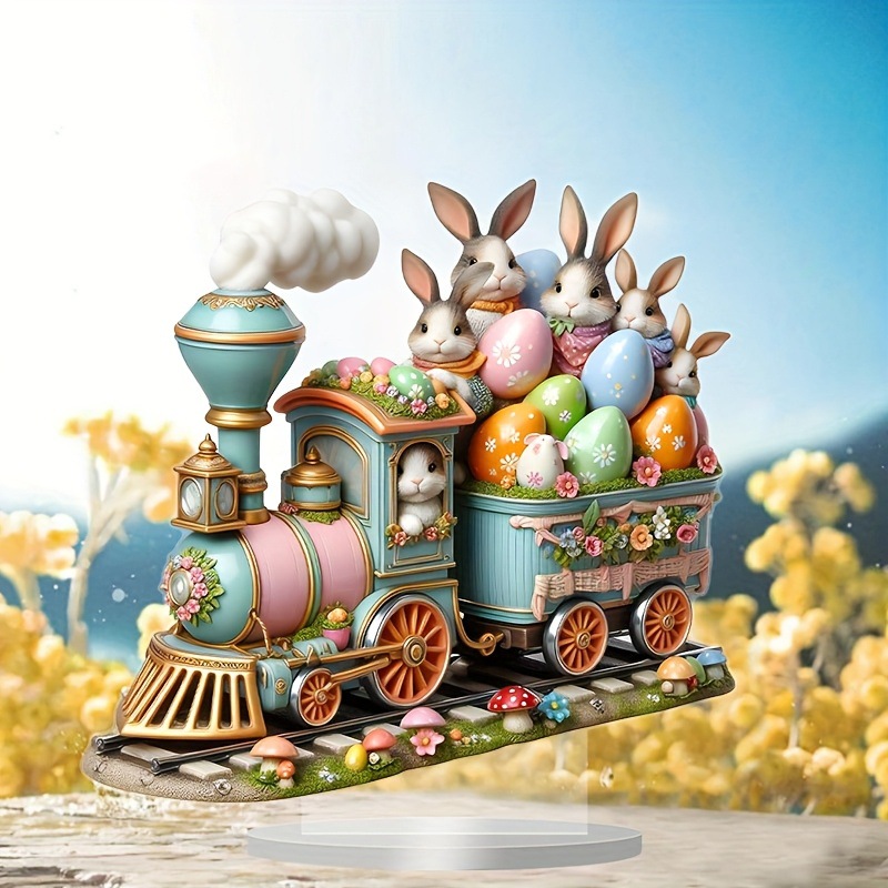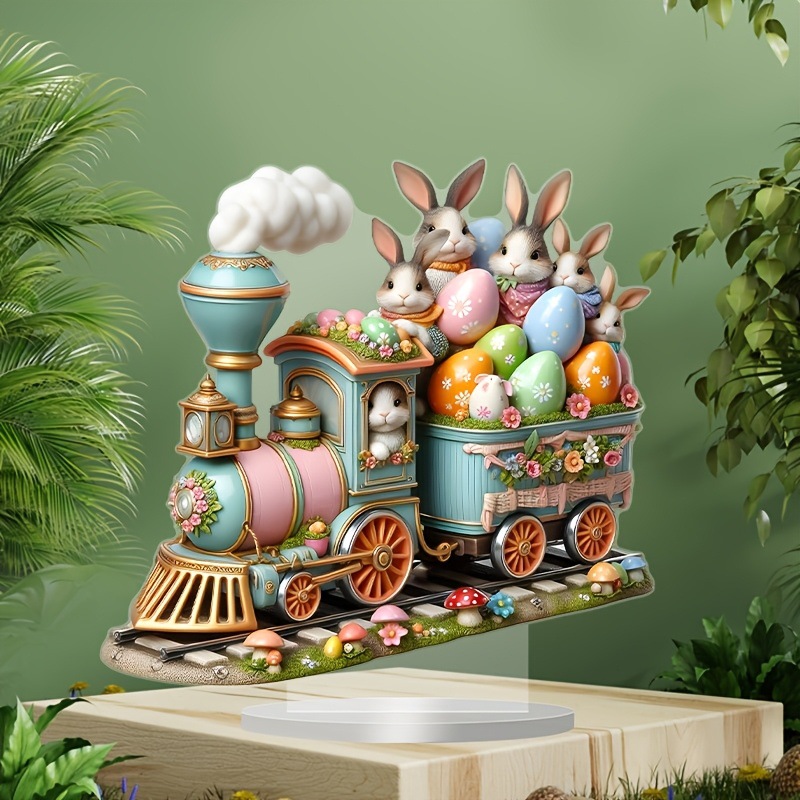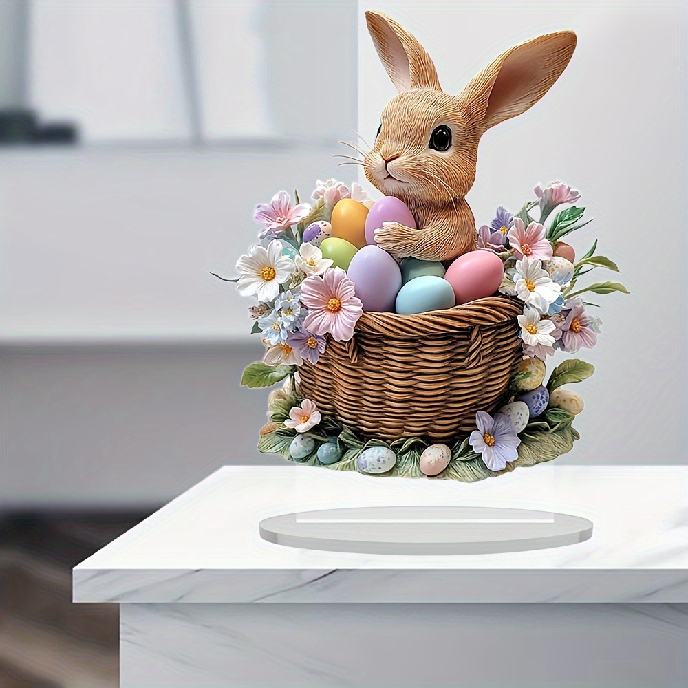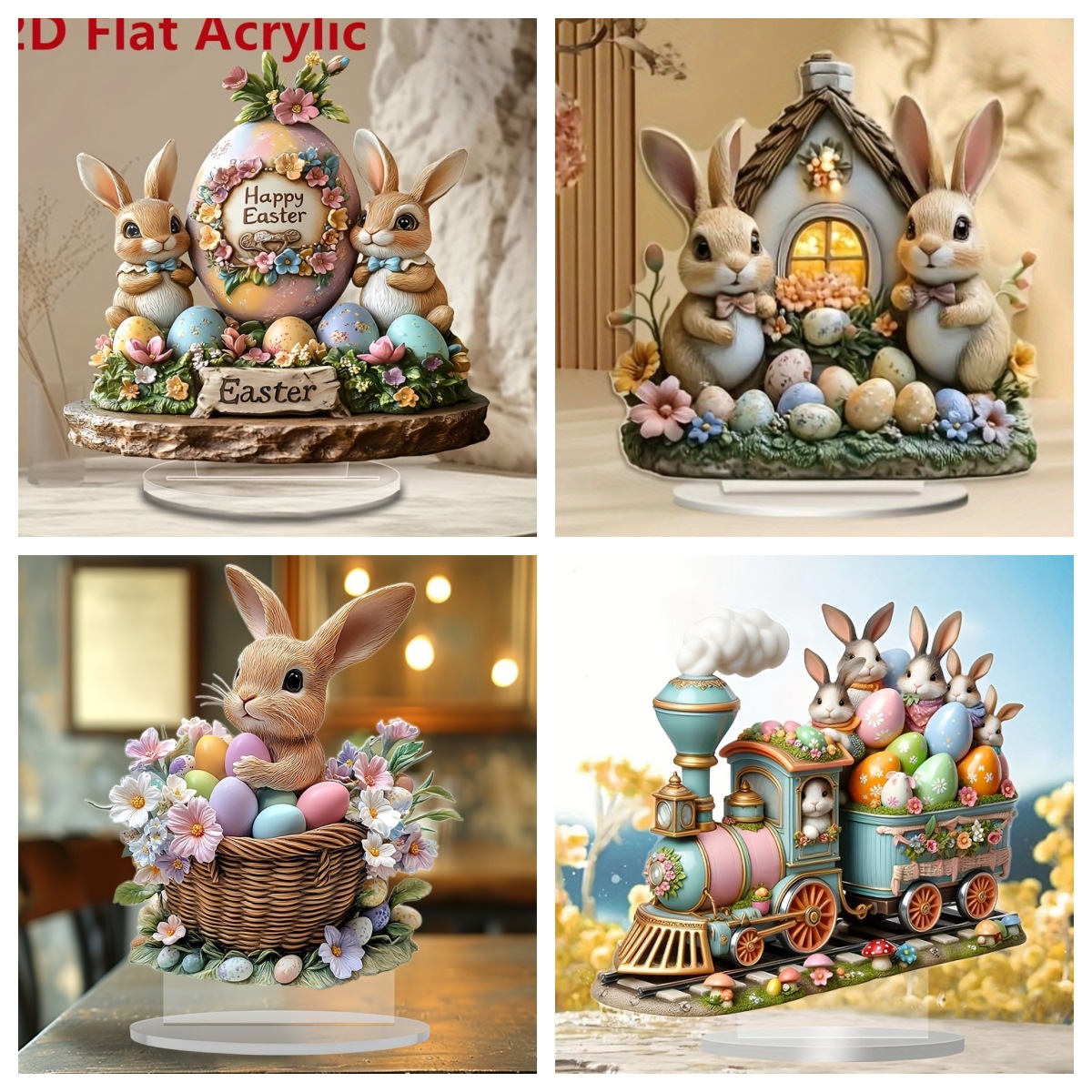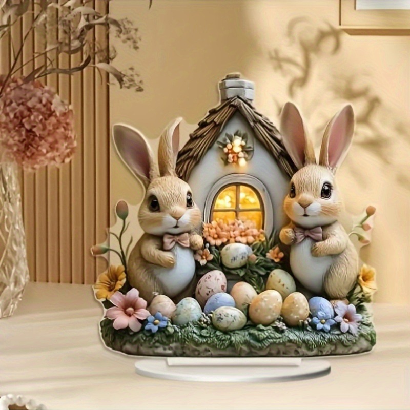 국경 간 부활절 두 개의 토끼 계란 꽃 코티지 2D 아크릴 데스크탑 장식 휴일 분위기 장식스토어 가기