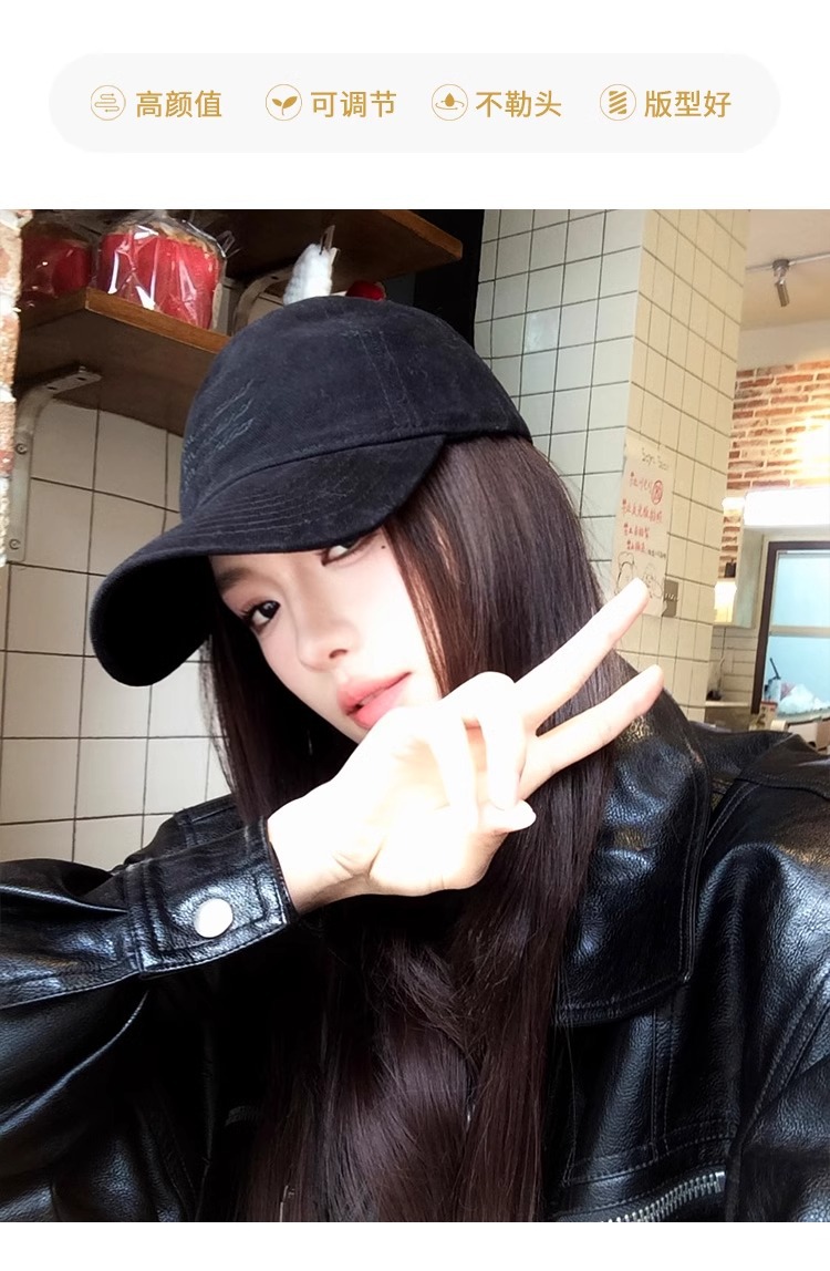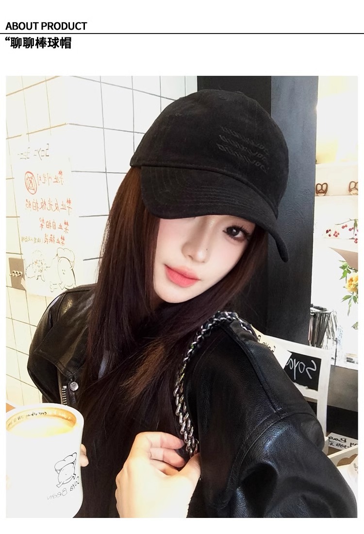 빈티지 자수 블랙 야구 모자 여자 2025 봄 새로운 도착 올 매치 얼굴 작은 모자 큰 머리 와이 모자 트렌디스토어 가기