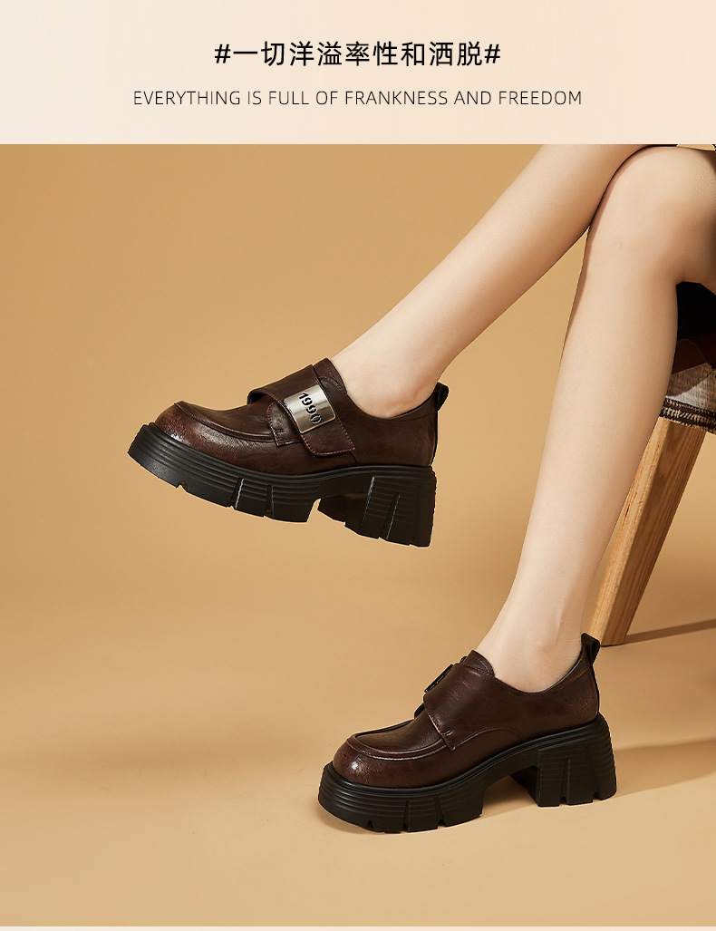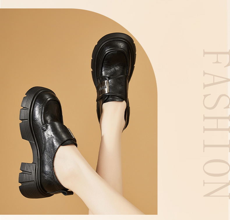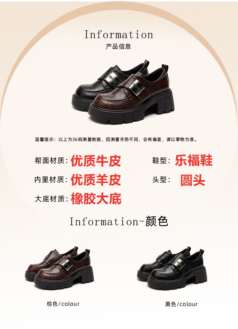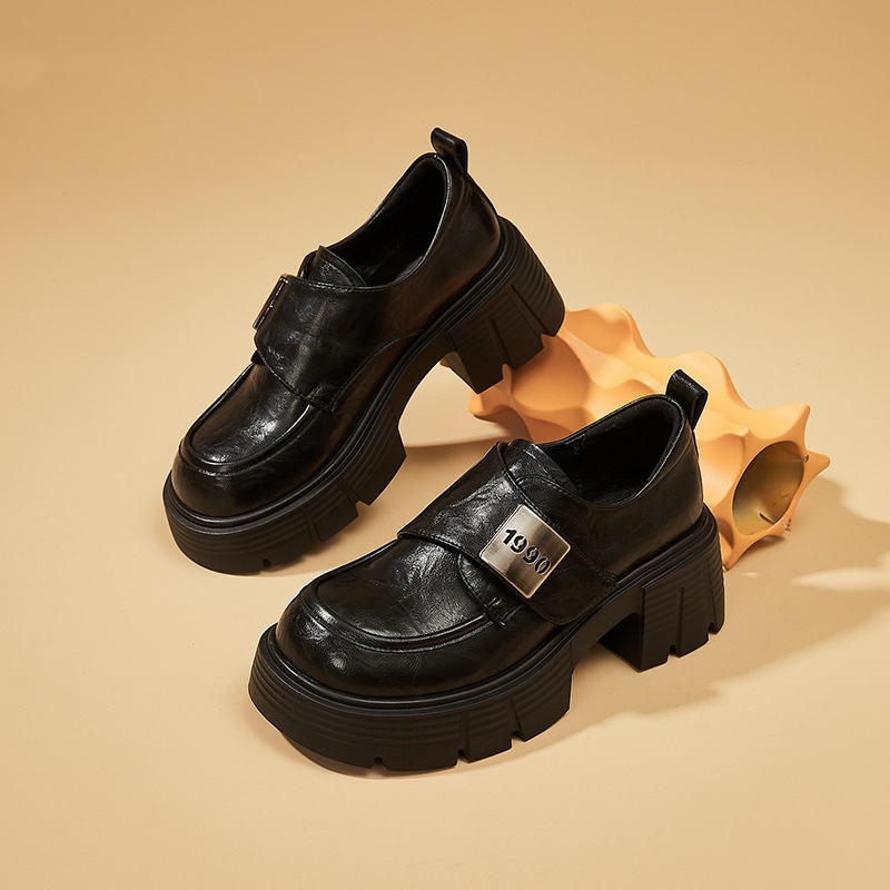 Cowhide 버전 ~ 영국 스타일의 검은 로퍼 2025 여성을위한 새로운 두꺼운 밑창 다목적 복고풍 하이힐 작은 가죽 신발.스토어 가기