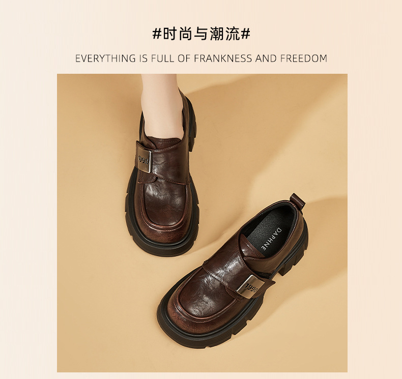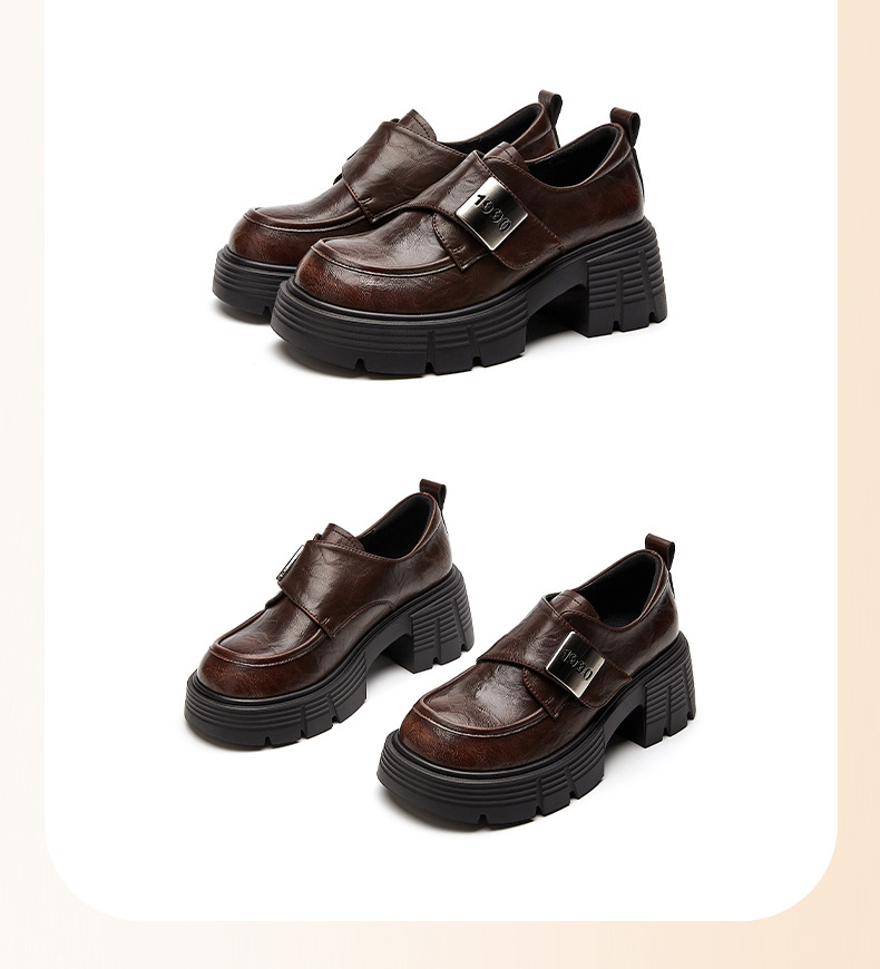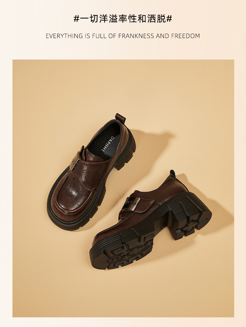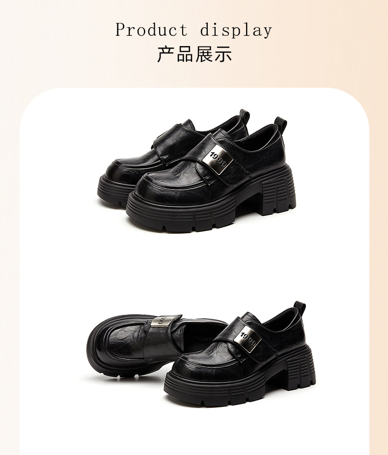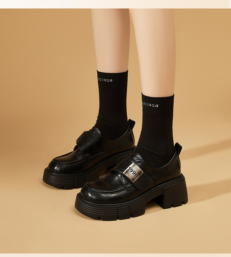 Cowhide 버전 ~ 영국 스타일의 검은 로퍼 2025 여성을위한 새로운 두꺼운 밑창 다목적 복고풍 하이힐 작은 가죽 신발.스토어 가기