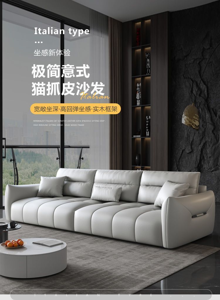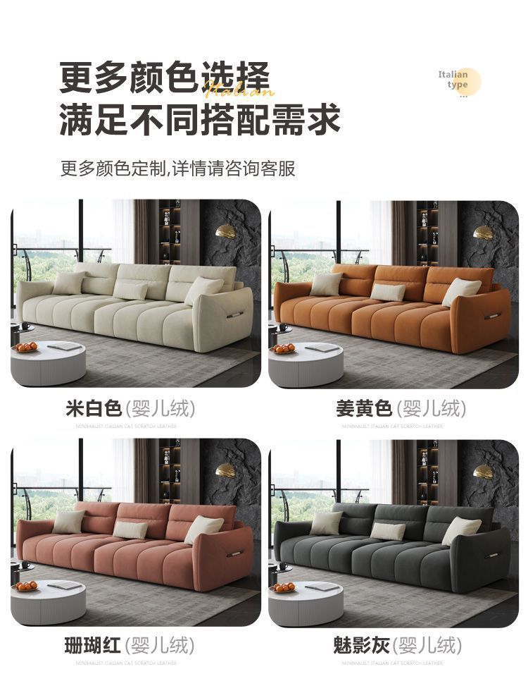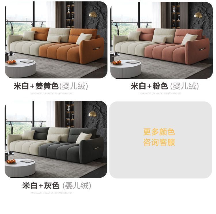 MZ 이탈리아 미니멀리스트 작은 아파트 고양이 스크래치 가죽 베이비 벨벳 스트레이트 페달 3 인 임대 하우스 패브릭 소파스토어 가기