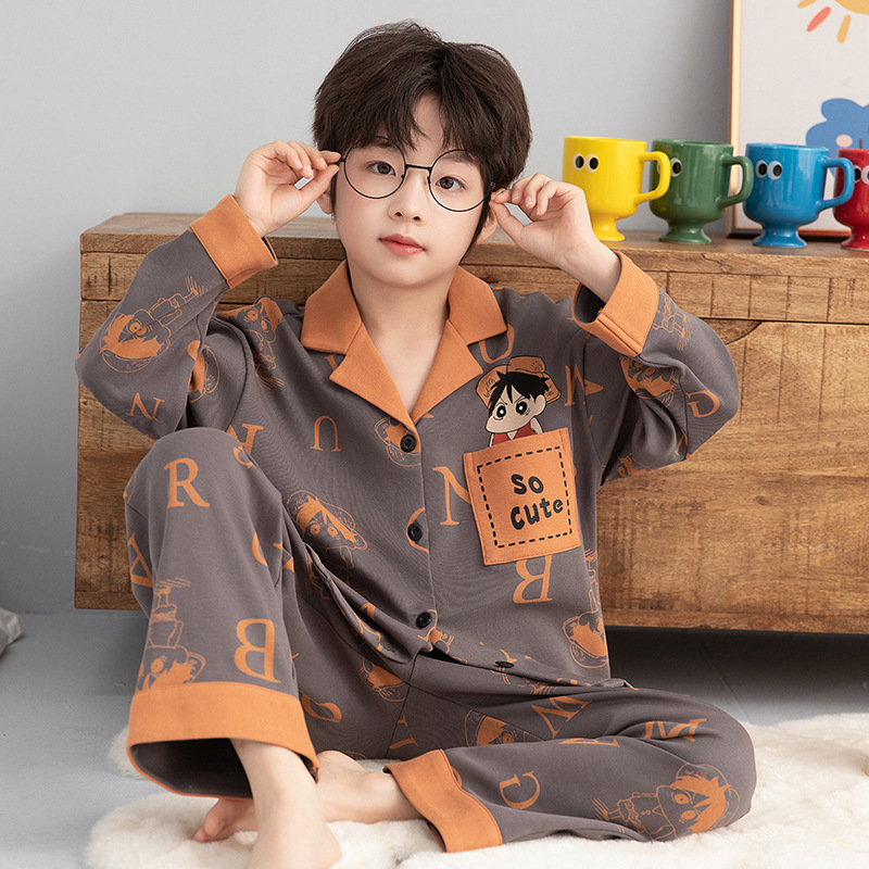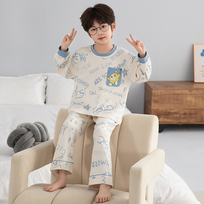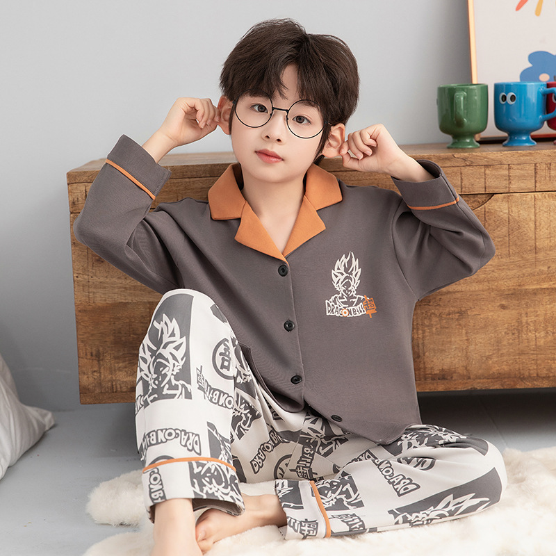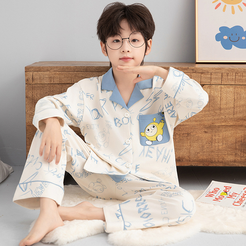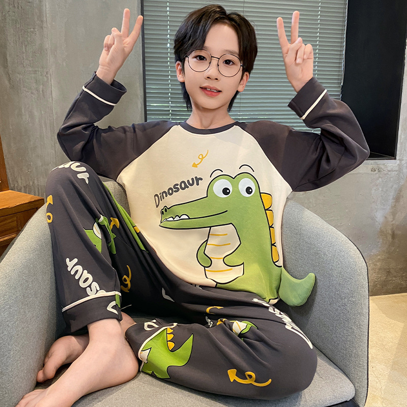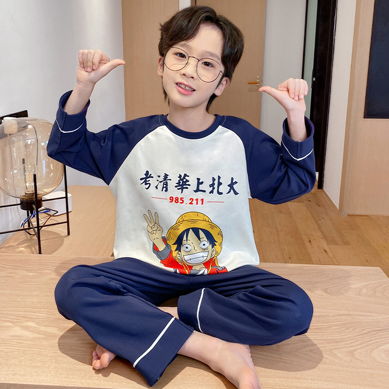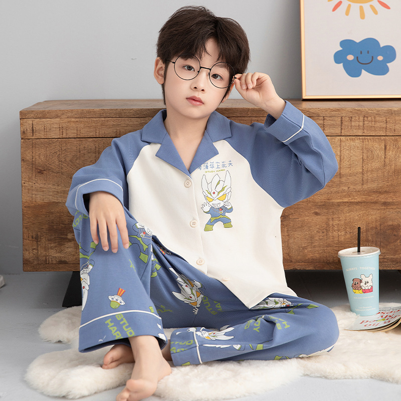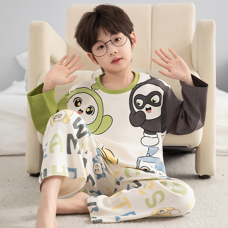 어린이 아기 잠옷 소년 봄과 가을 면 긴 소매 얇은 십대 소년 홈 옷 세트 만화스토어 가기