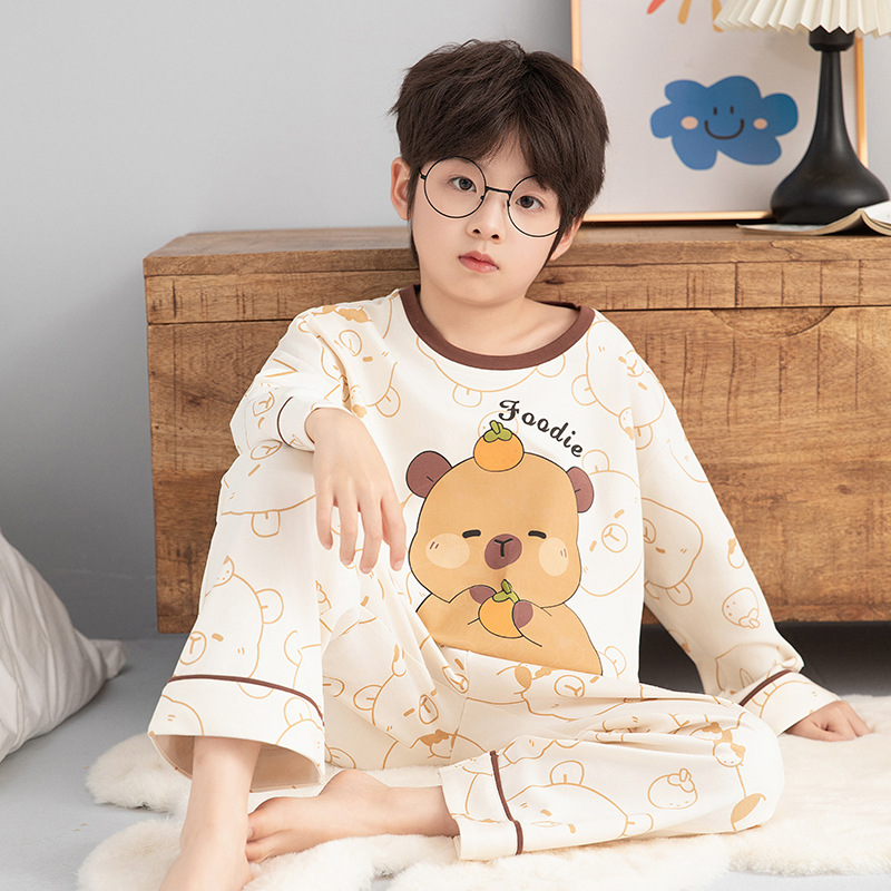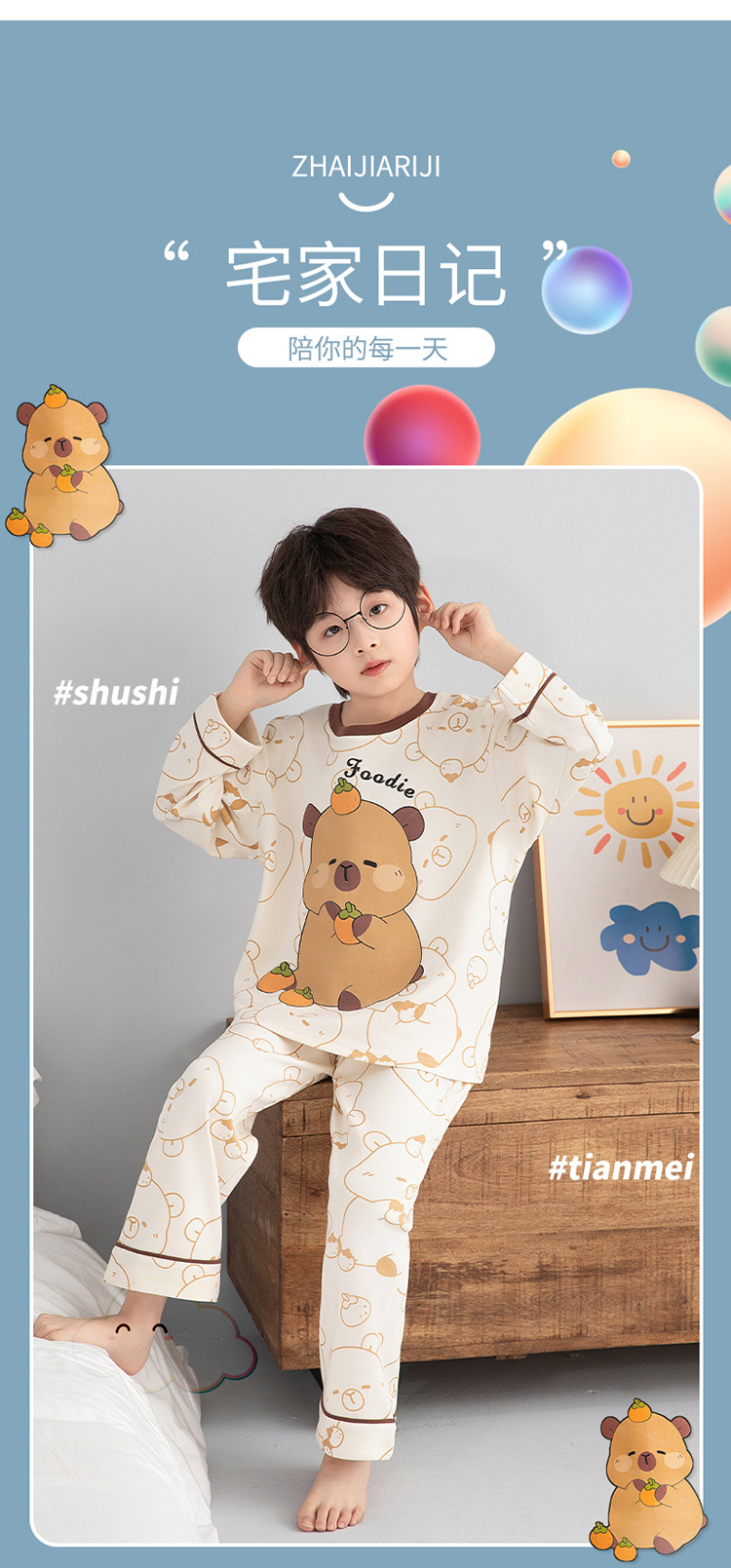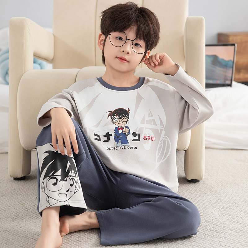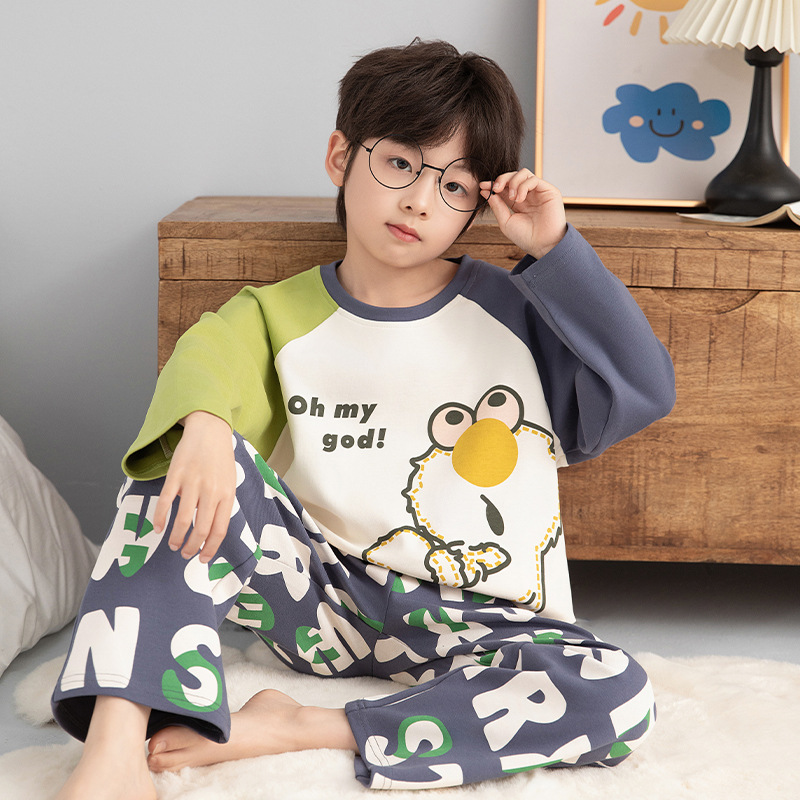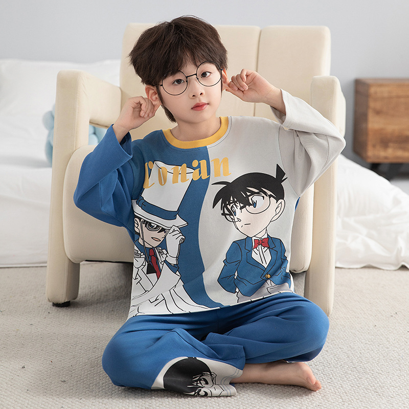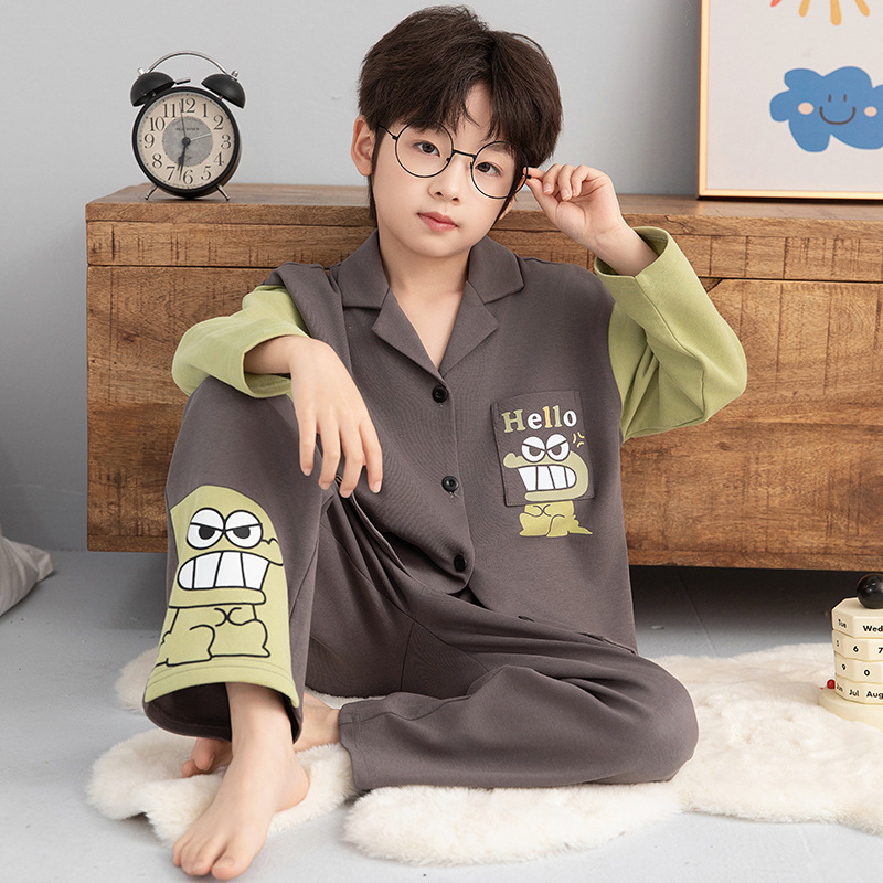 어린이 아기 잠옷 소년 봄과 가을 면 긴 소매 얇은 십대 소년 홈 옷 세트 만화스토어 가기