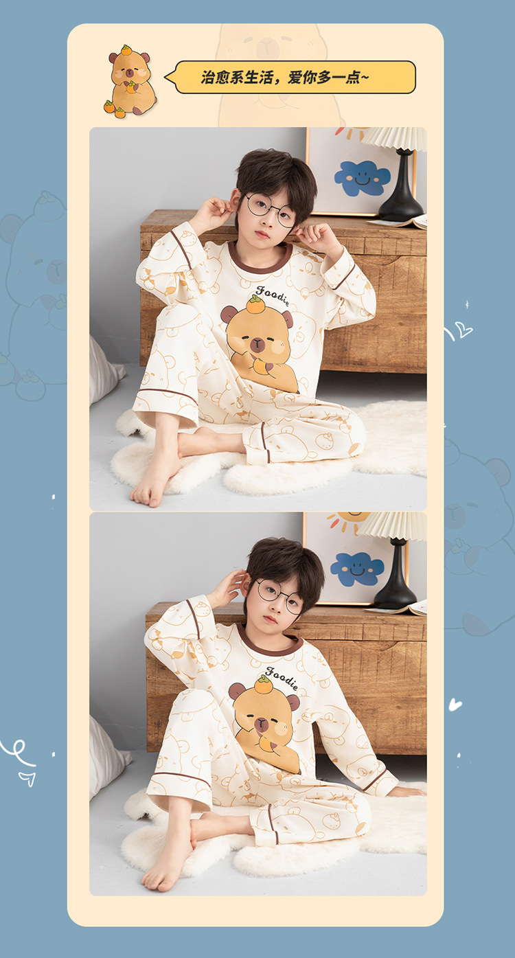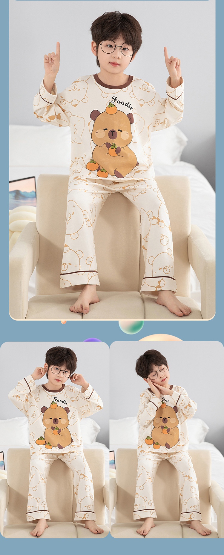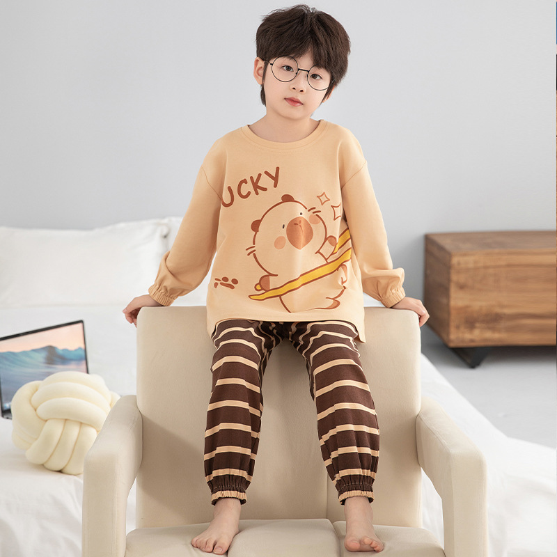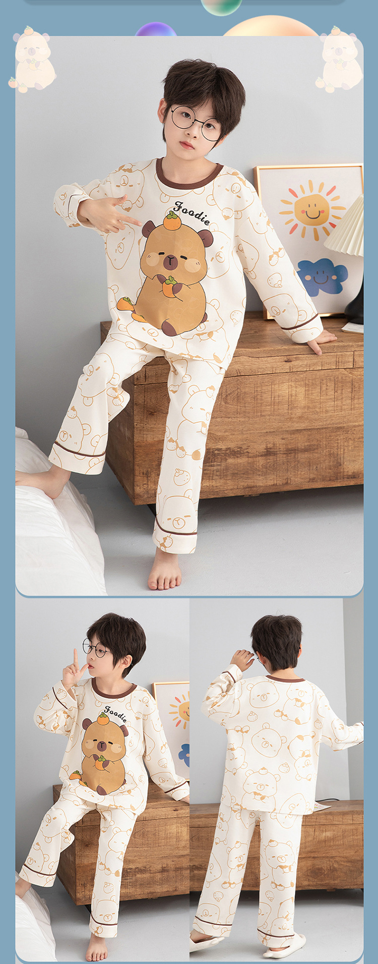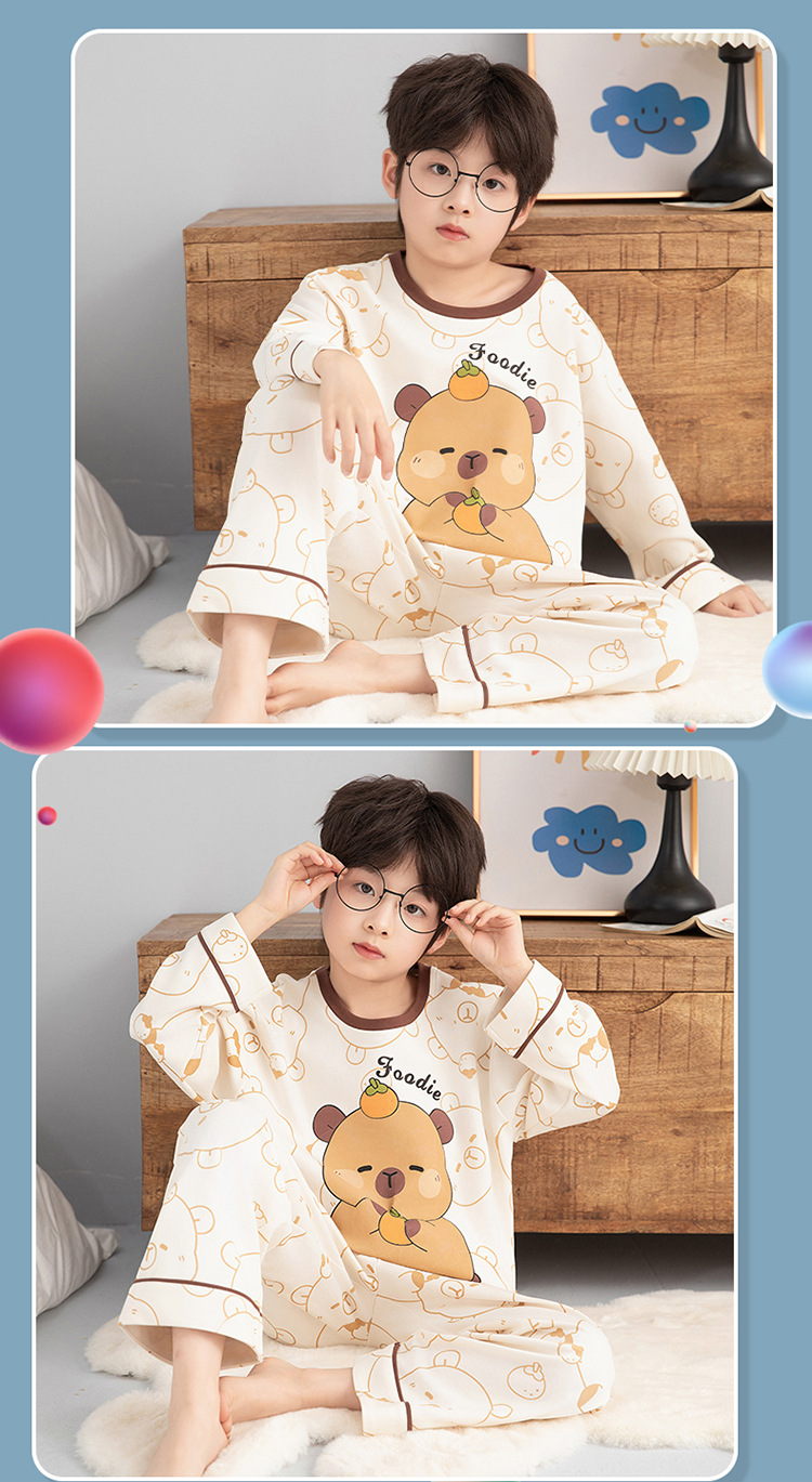 어린이 아기 잠옷 소년 봄과 가을 면 긴 소매 얇은 십대 소년 홈 옷 세트 만화스토어 가기