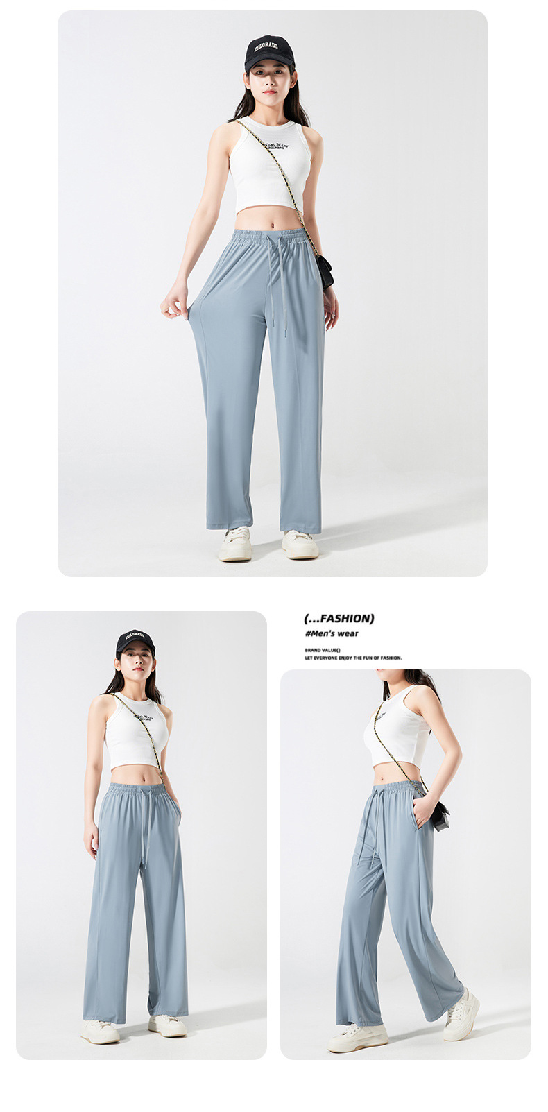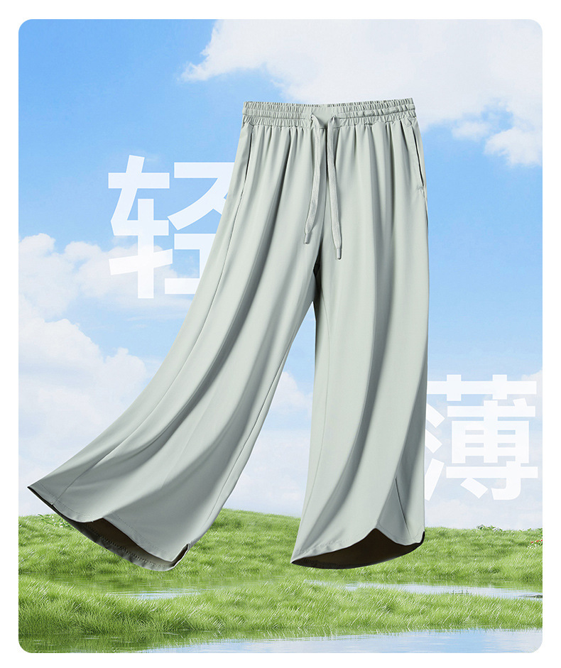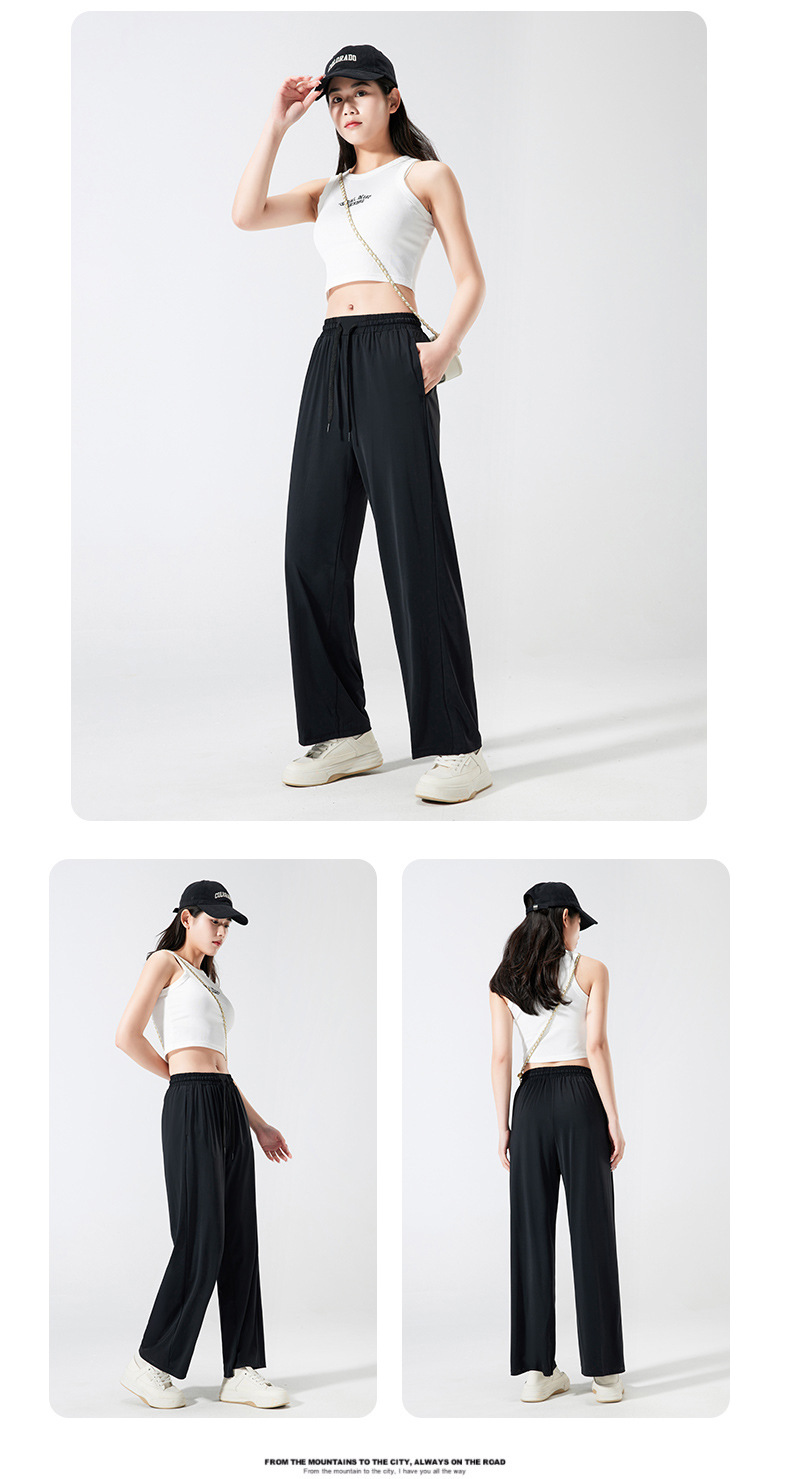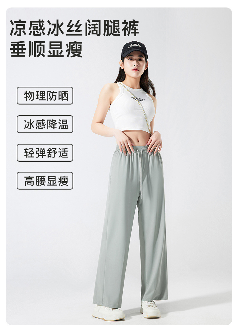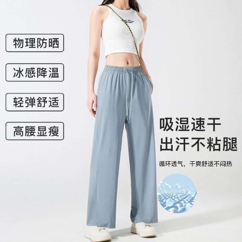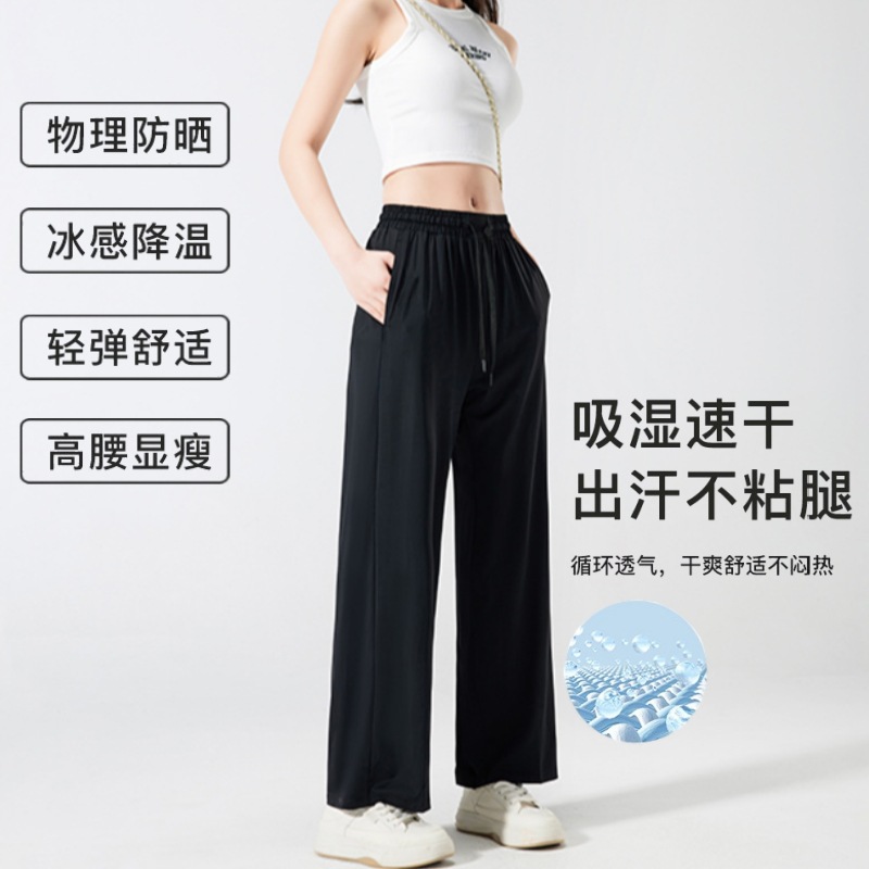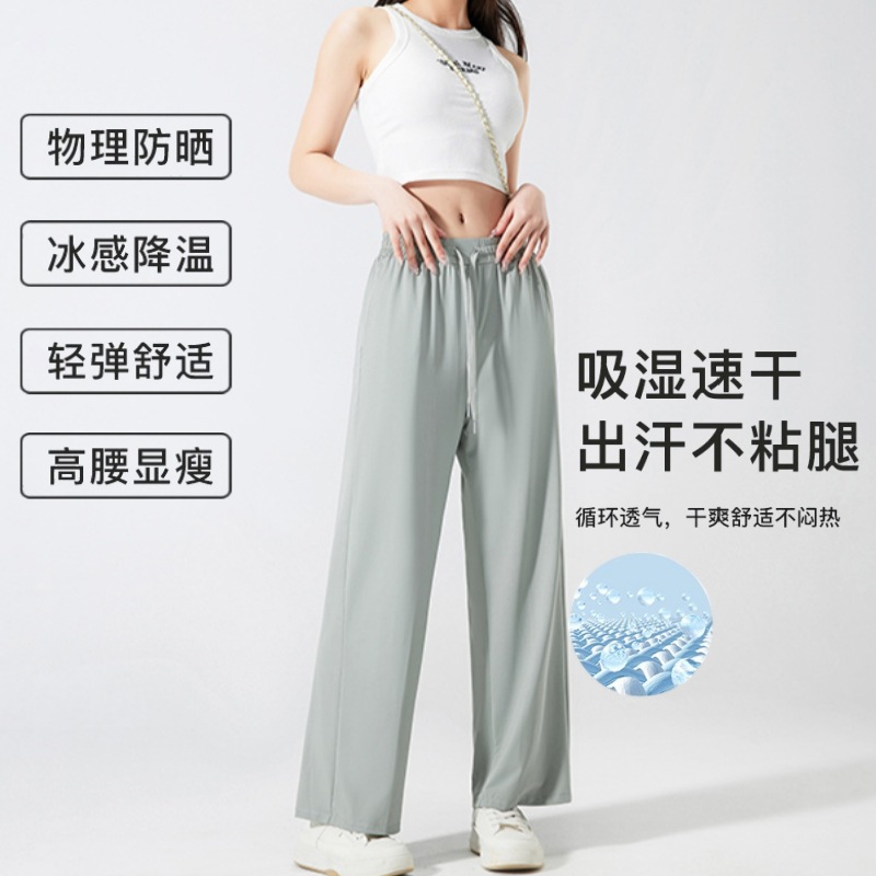넓은 다리 바지 여성용 아이스 실크 태양 보호 바지 여성용 안티 자외선 쿨 센스 빠른 건조 스트레치 통기성 걸레 바지 여성용 발목 길이 바지스토어 가기