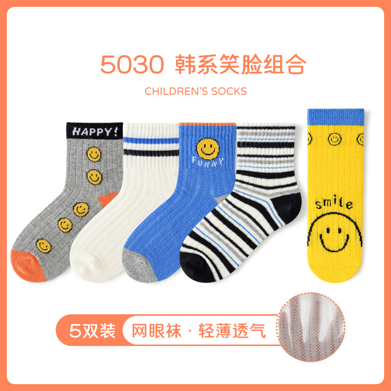 소년 양말 봄과 여름 얇은 면 양말 어린이 한국 스마일리 콤비네이션 여름 메쉬 통기성 대형 양말