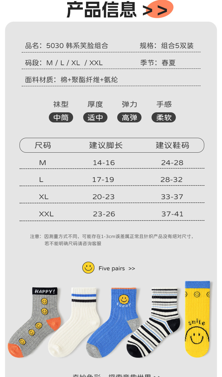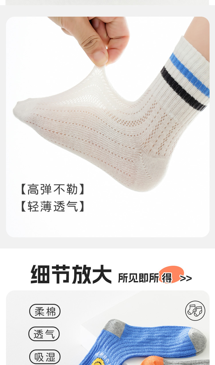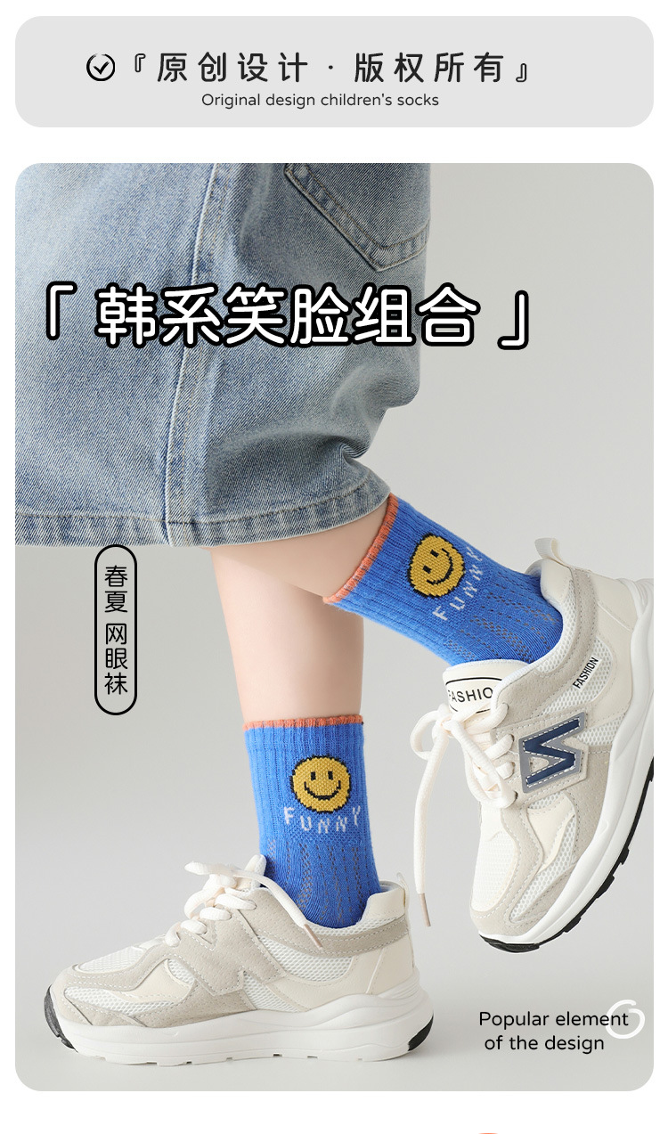 소년 양말 봄과 여름 얇은 면 양말 어린이 한국 스마일리 콤비네이션 여름 메쉬 통기성 대형 양말스토어 가기