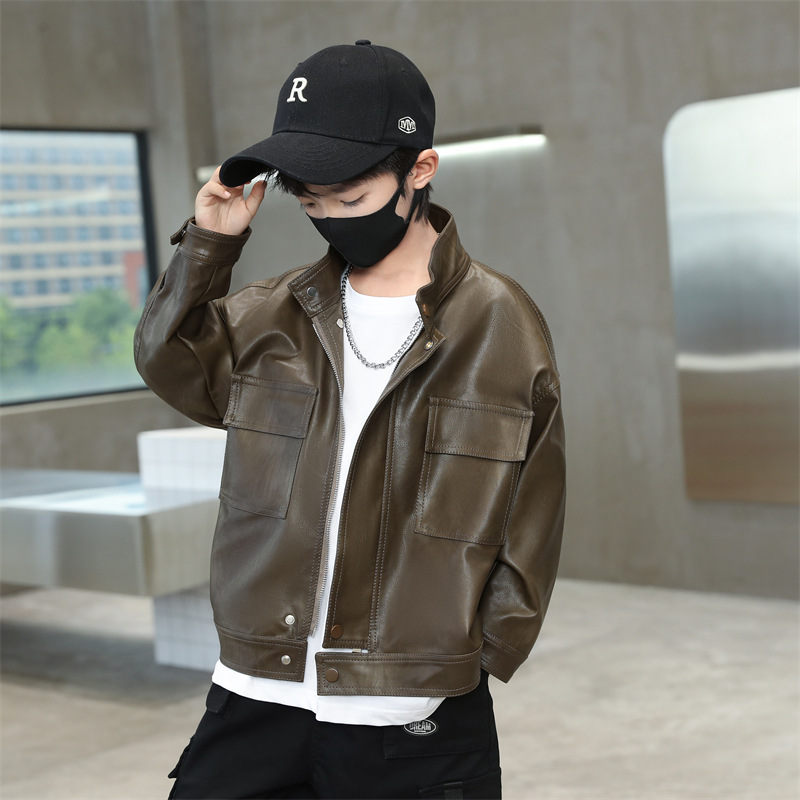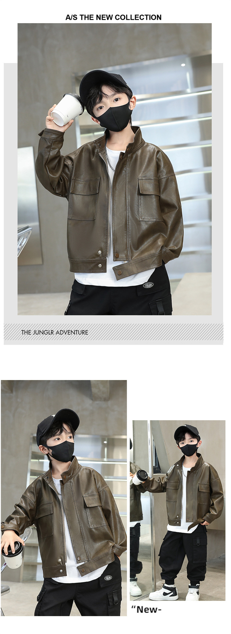 하이 퀄리티 소년 가죽 자켓 2025 새로운 CUHK 어린이 PU 가죽 자켓 CUHK 어린이 패션 오토바이 빈티지