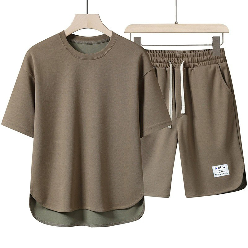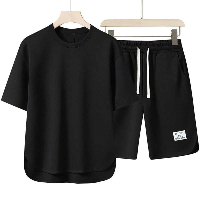 2025 여름 어린이 간단한 단색 느슨한 캐주얼 세트 중대형 어린이 승무원 반바지 스포츠 투피스 세트