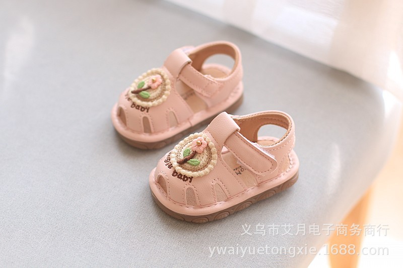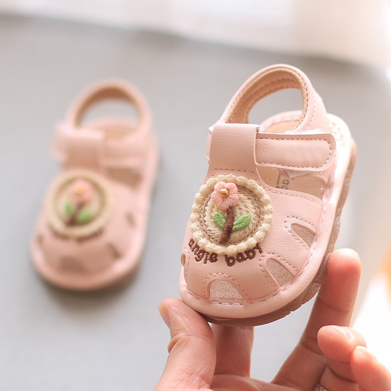 여름 1 살 아기 소녀 샌들 부드러운 밑창 유아 통기성 유아 신발 미끄럼 방지 작은 꽃 호출 신발 Baotou