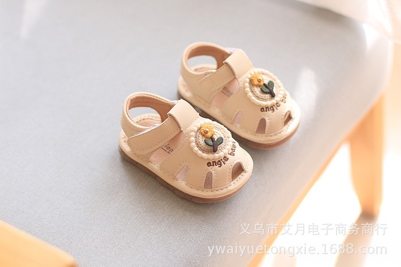 여름 1 살 아기 소녀 샌들 부드러운 밑창 유아 통기성 유아 신발 미끄럼 방지 작은 꽃 호출 신발 Baotou스토어 가기