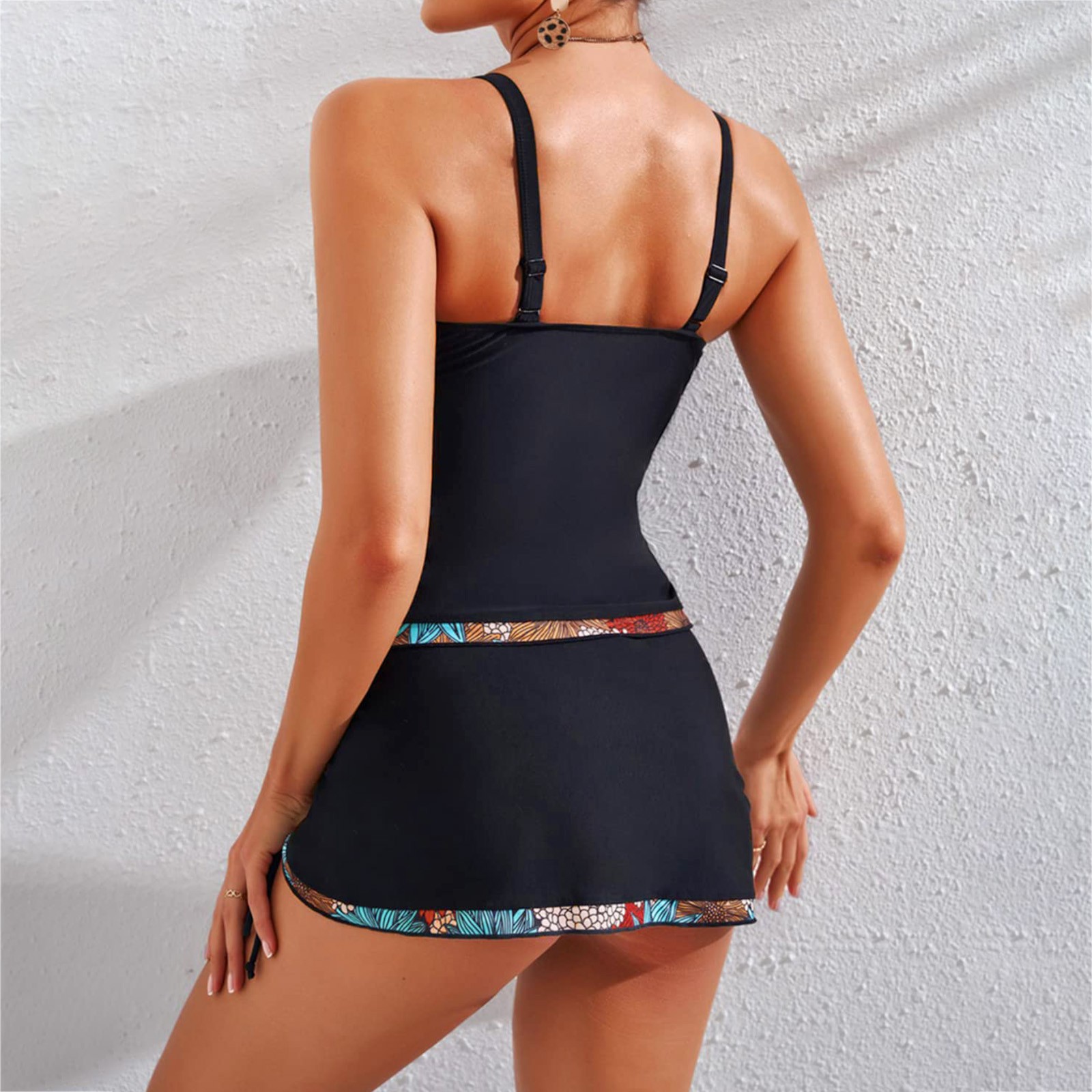 2025 새로운 스타일 벨리 커버 비키니 여성 컬러 블록 섹시한 비치 멀티 컬러 수영복 스커트 스플릿 투피스 세트