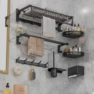 雅黑毛巾架卫生间置物架免打孔浴室架子一体挂件厕所太空铝浴巾架