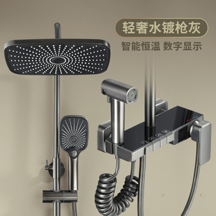 枪灰色氛围灯淋浴花洒套装卫生间黄铜恒温增压数显钢琴按键淋浴器