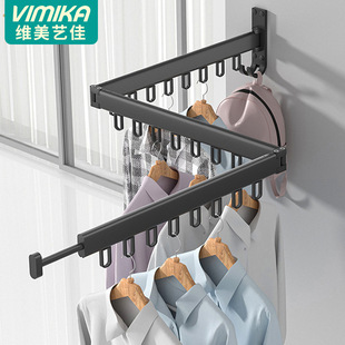 阳台壁挂式折叠晾衣架 室内隐形伸缩晾衣杆晒衣架晒被子神器