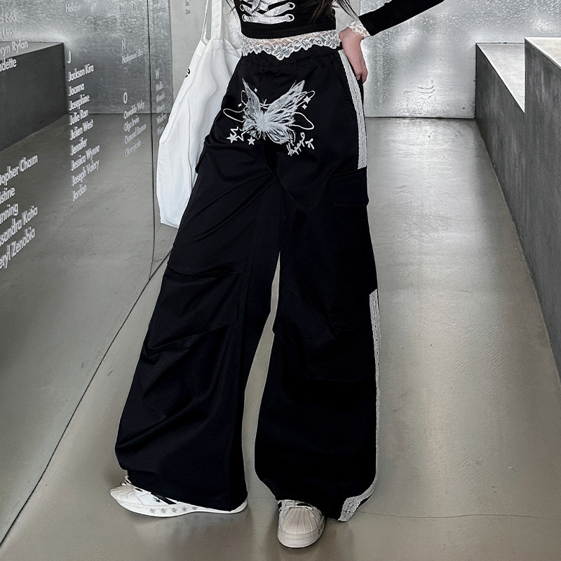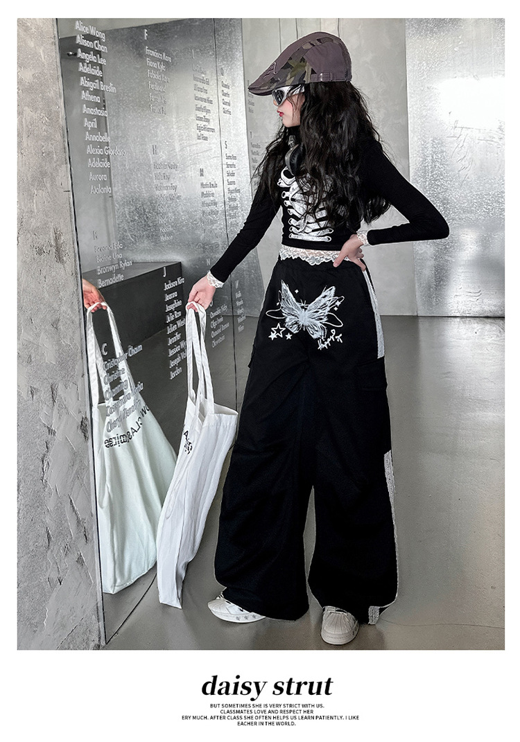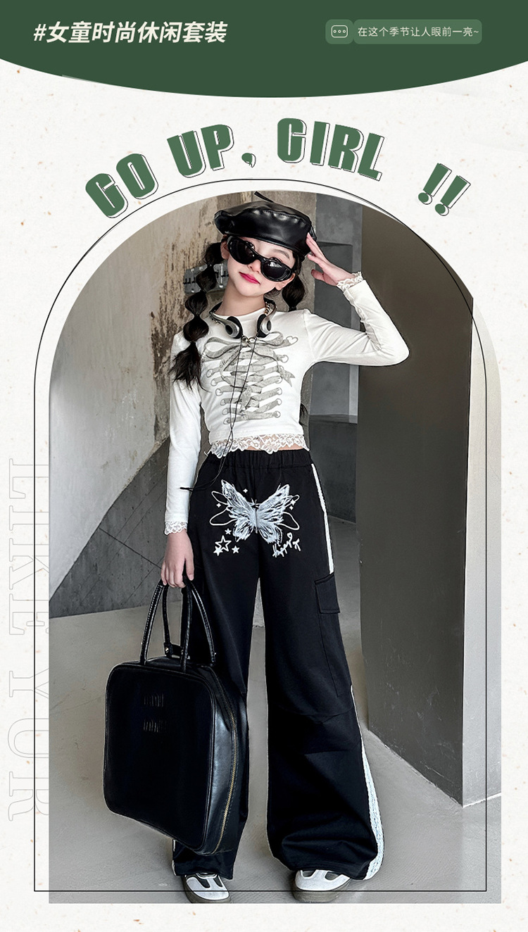 소녀 세트 레이스 프린트 탑 나비 크록 바지 투피스 세트 2025 새로운 어린이 봄과 가을 패션스토어 가기