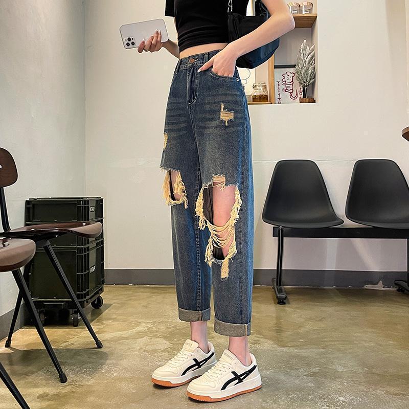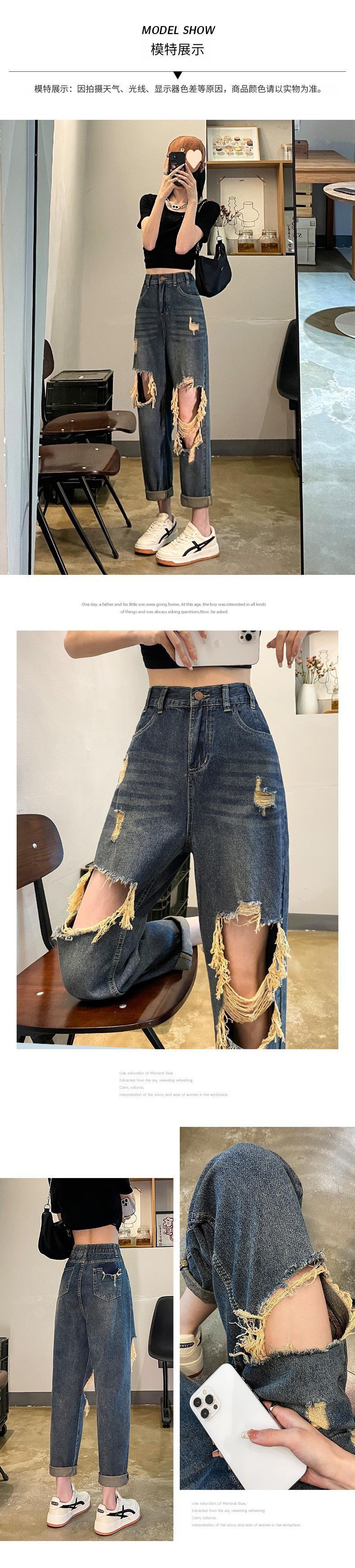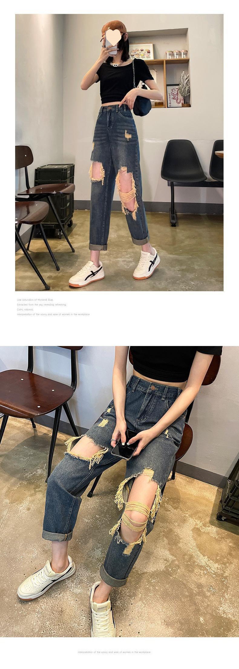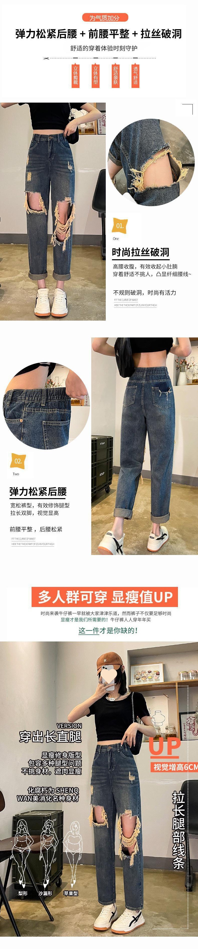 레트로 찢어진 청바지 여성 거지 바지 2025 년 봄과 여름 새로운 높은 허리 슬리밍 캐주얼 토레 바지스토어 가기