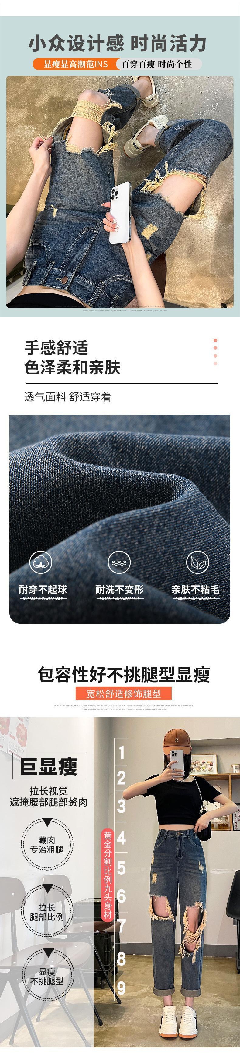 레트로 찢어진 청바지 여성 거지 바지 2025 년 봄과 여름 새로운 높은 허리 슬리밍 캐주얼 토레 바지
